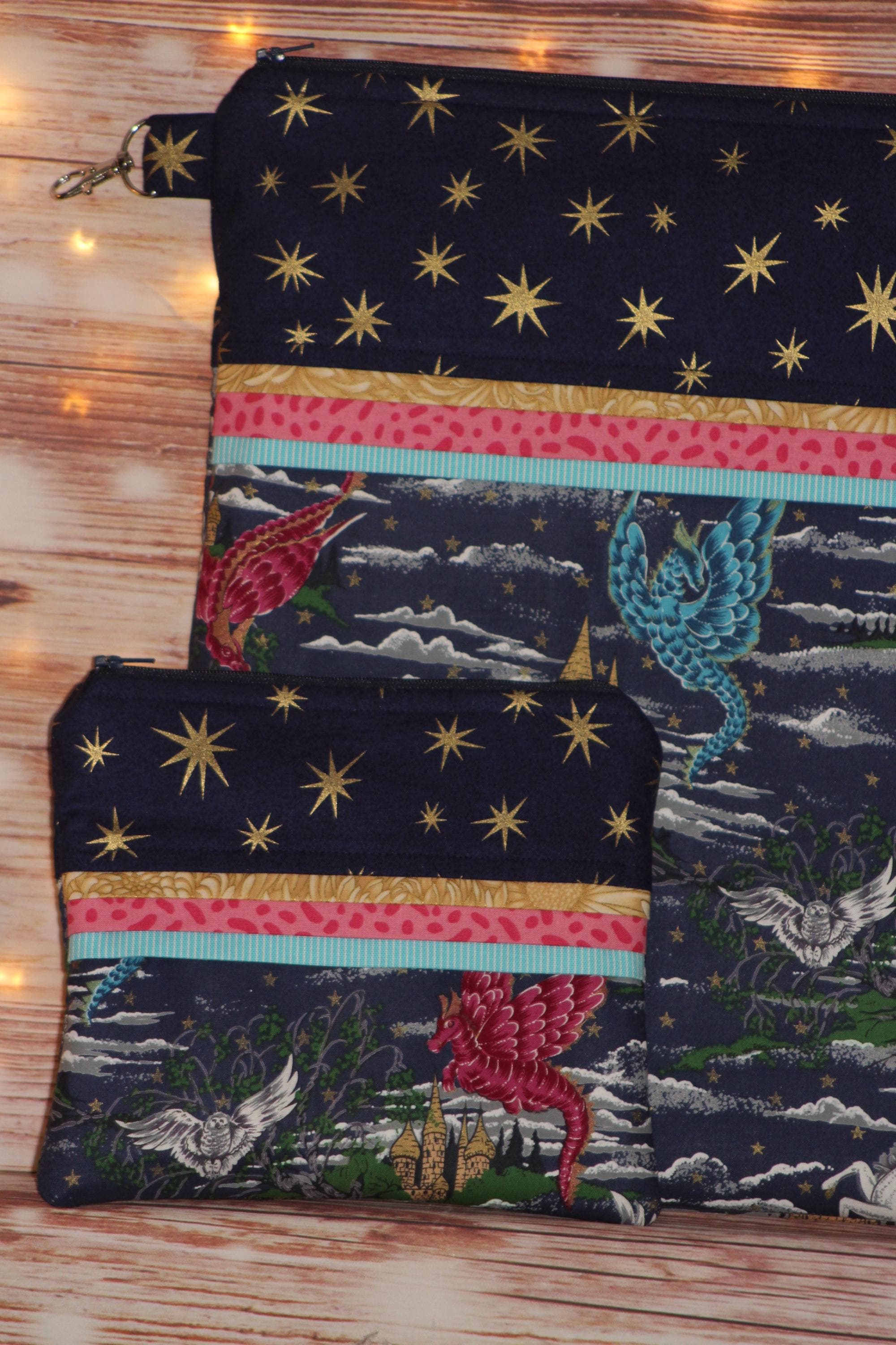 This fun set is made of cotton fabric, zippers, and batting in my smoke-free home studio.