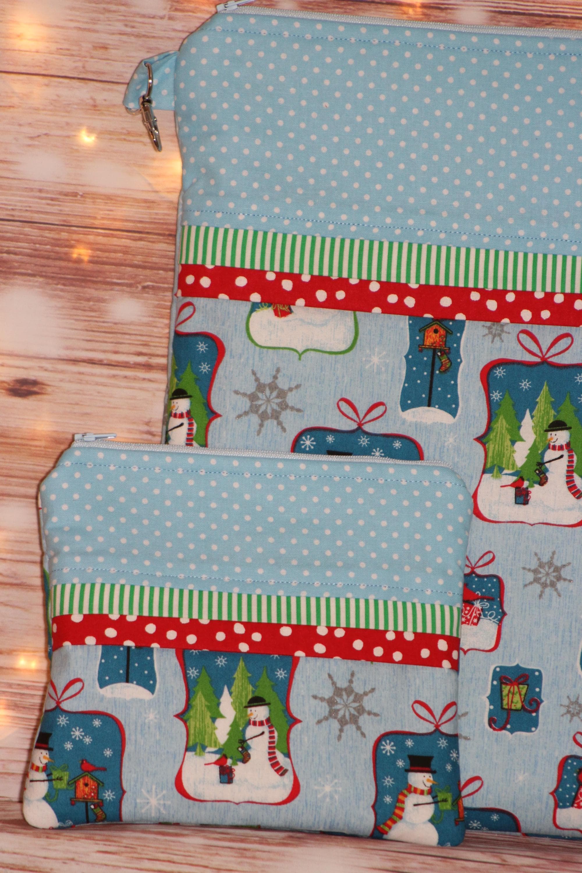 Bring a little smile to your stitching or needlecrafts with a cute little accessory bag for scissors, floss, etc.; and/or a project bag to tuck it all into for on the go.