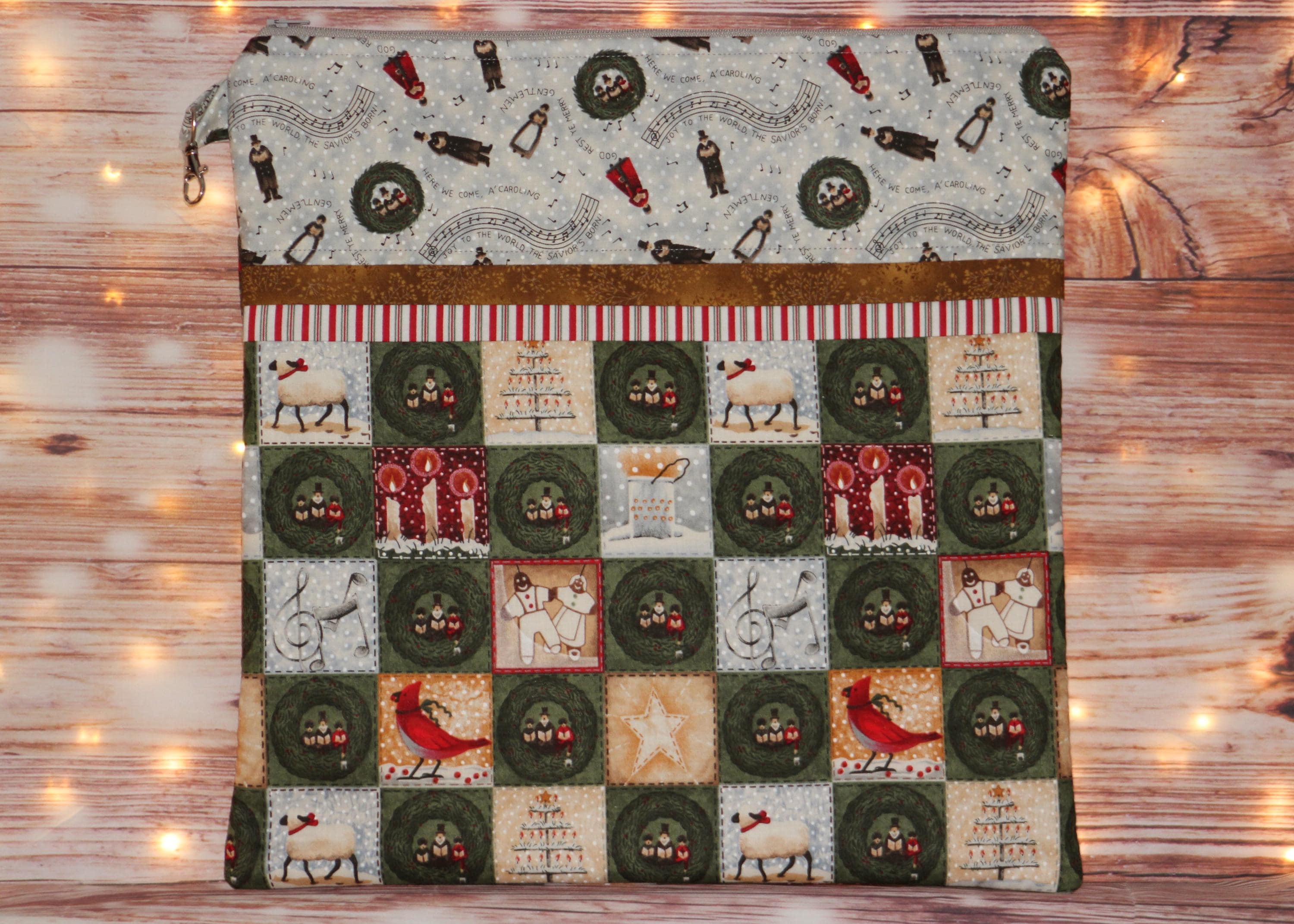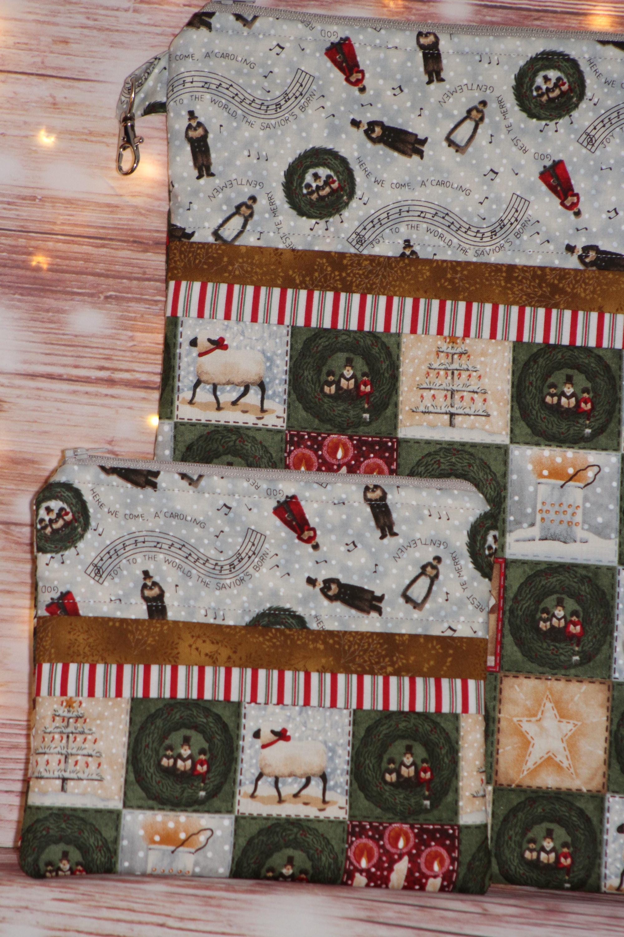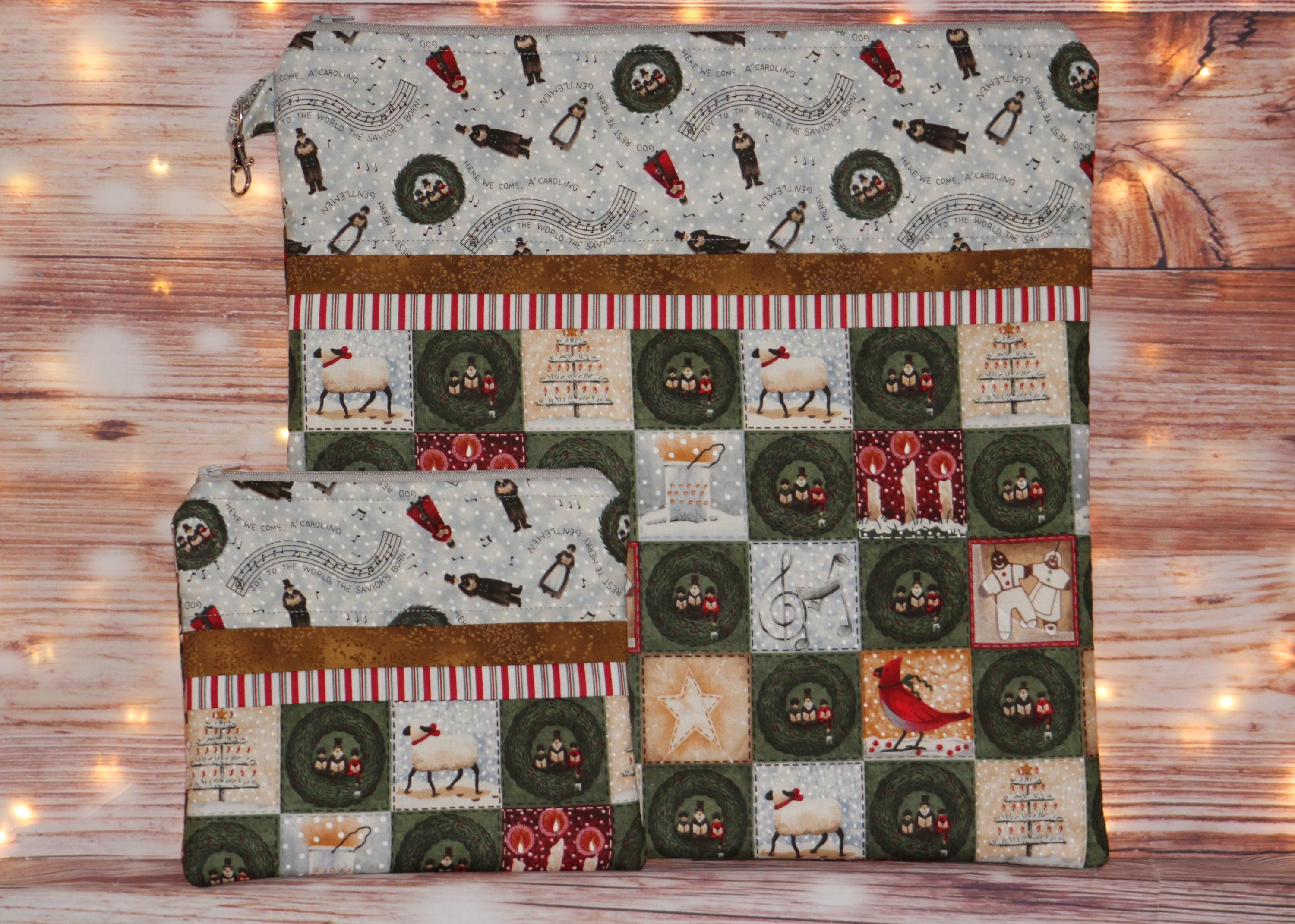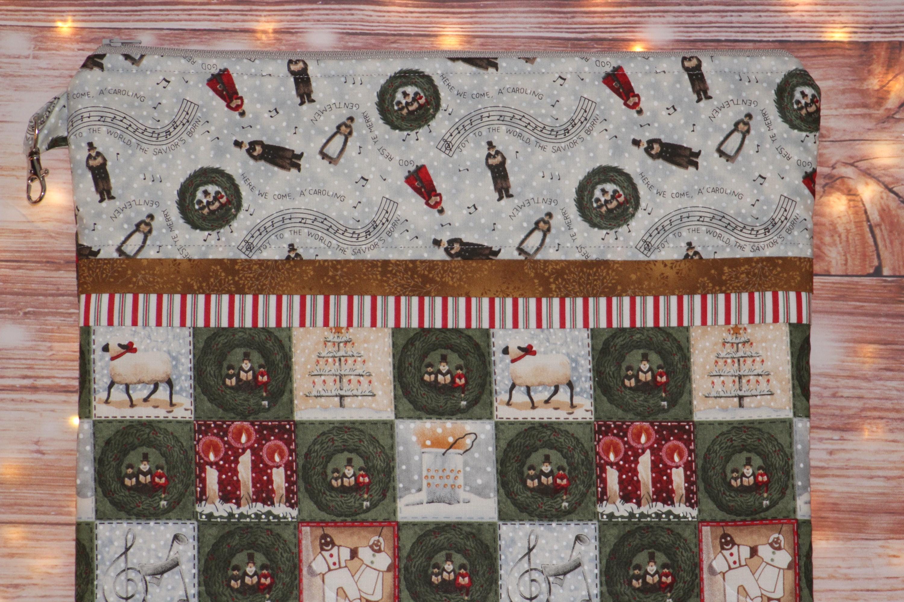 Christmas Carolers Project Bag OR 2-piece Set For Cross Stitch, Crochet, Knitting and Needlework, Craft Bag, Notions Bag