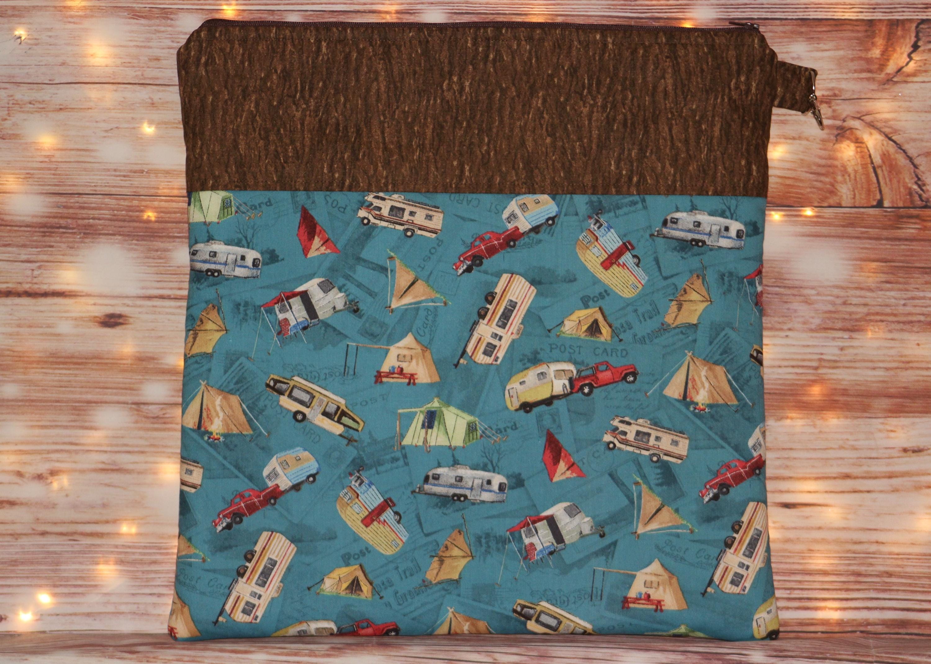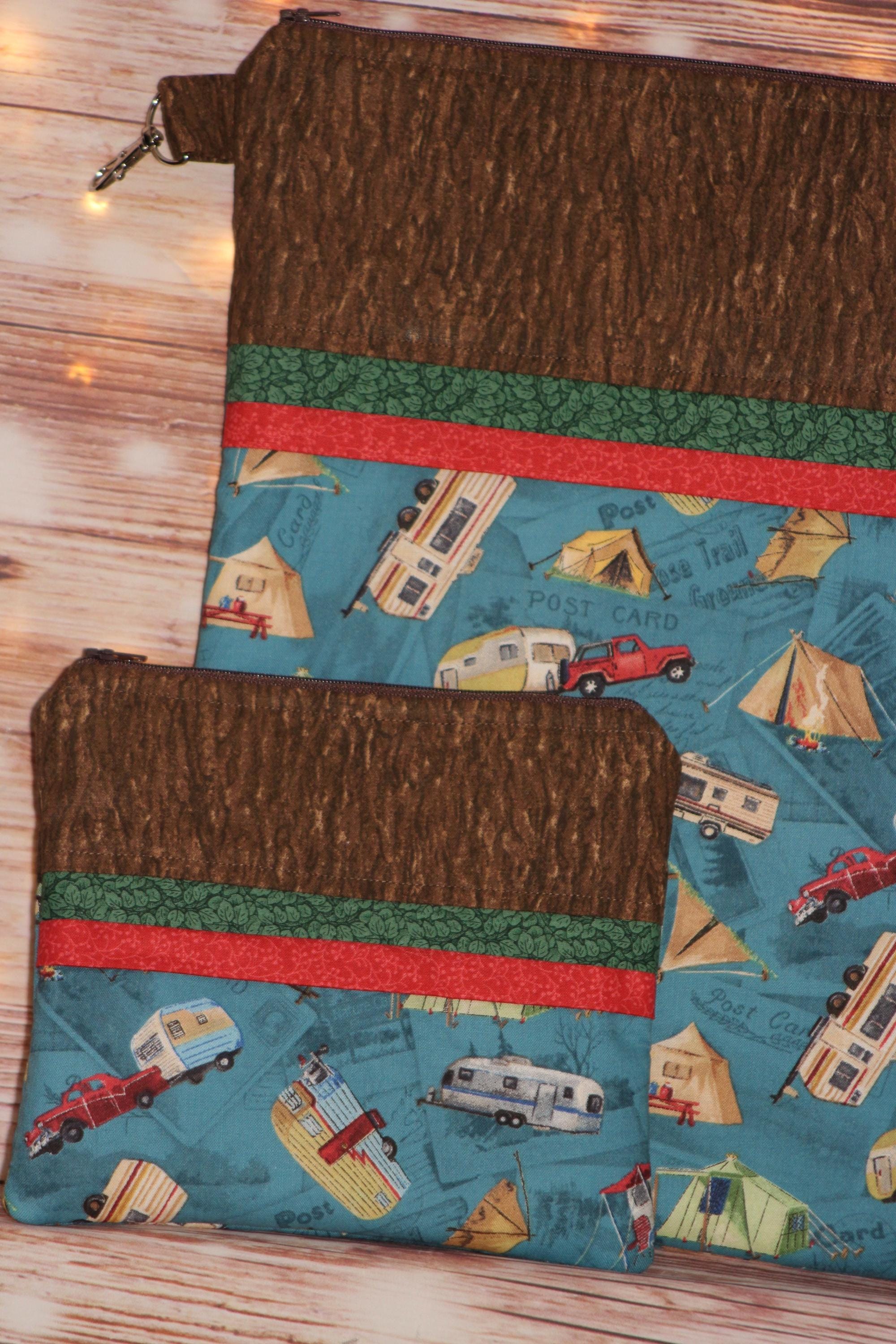 This fun set is made of cotton fabric, zippers, and batting in my smoke-free home studio.