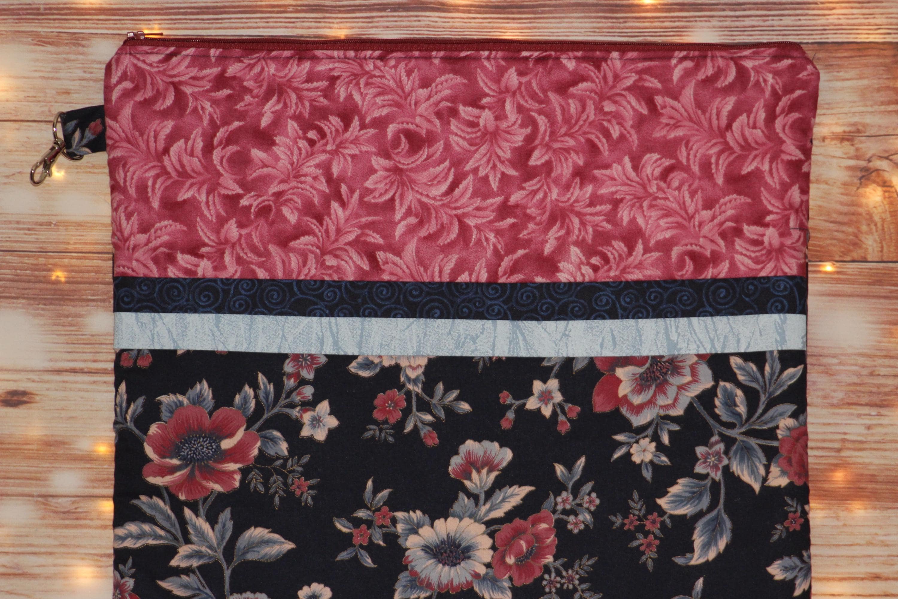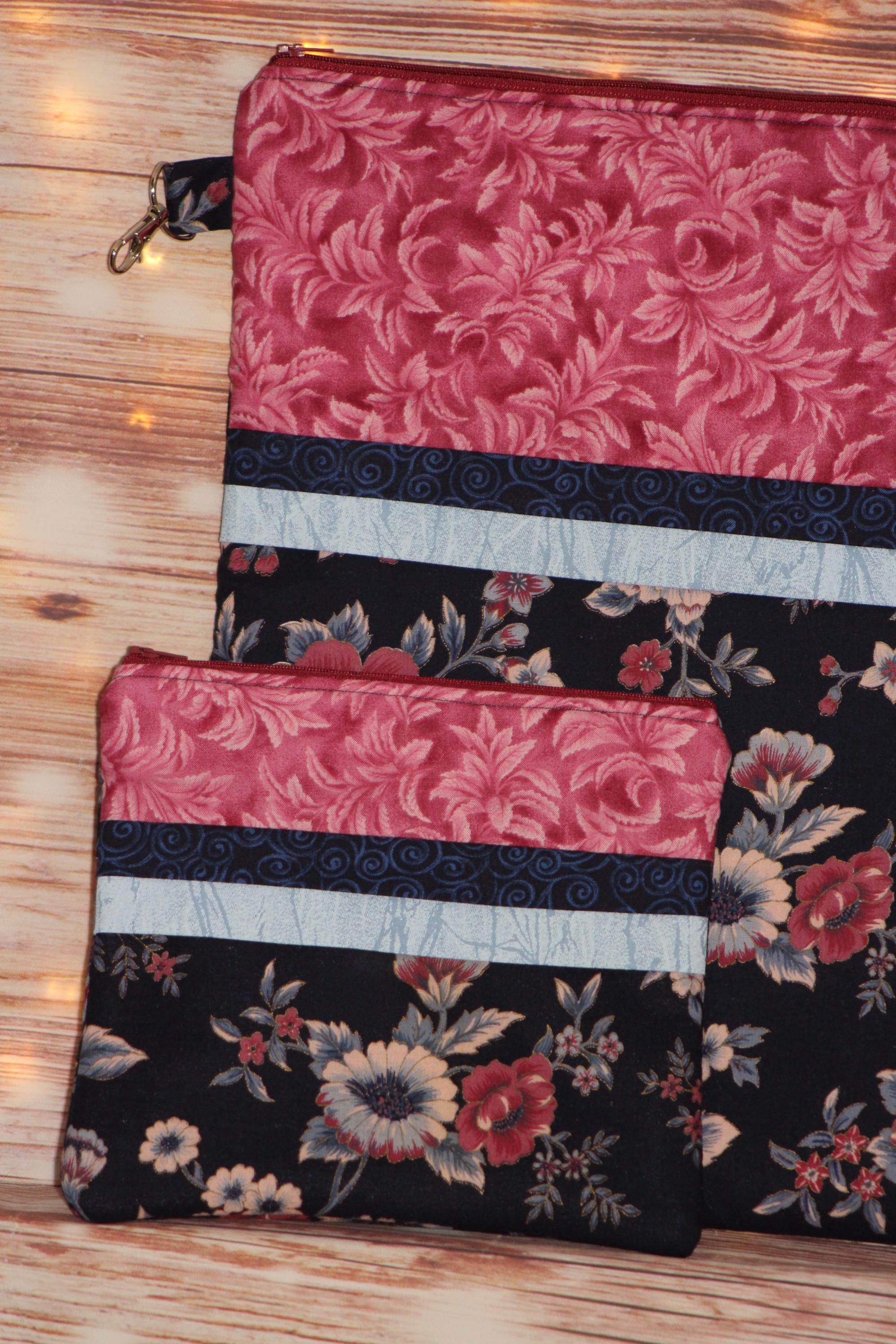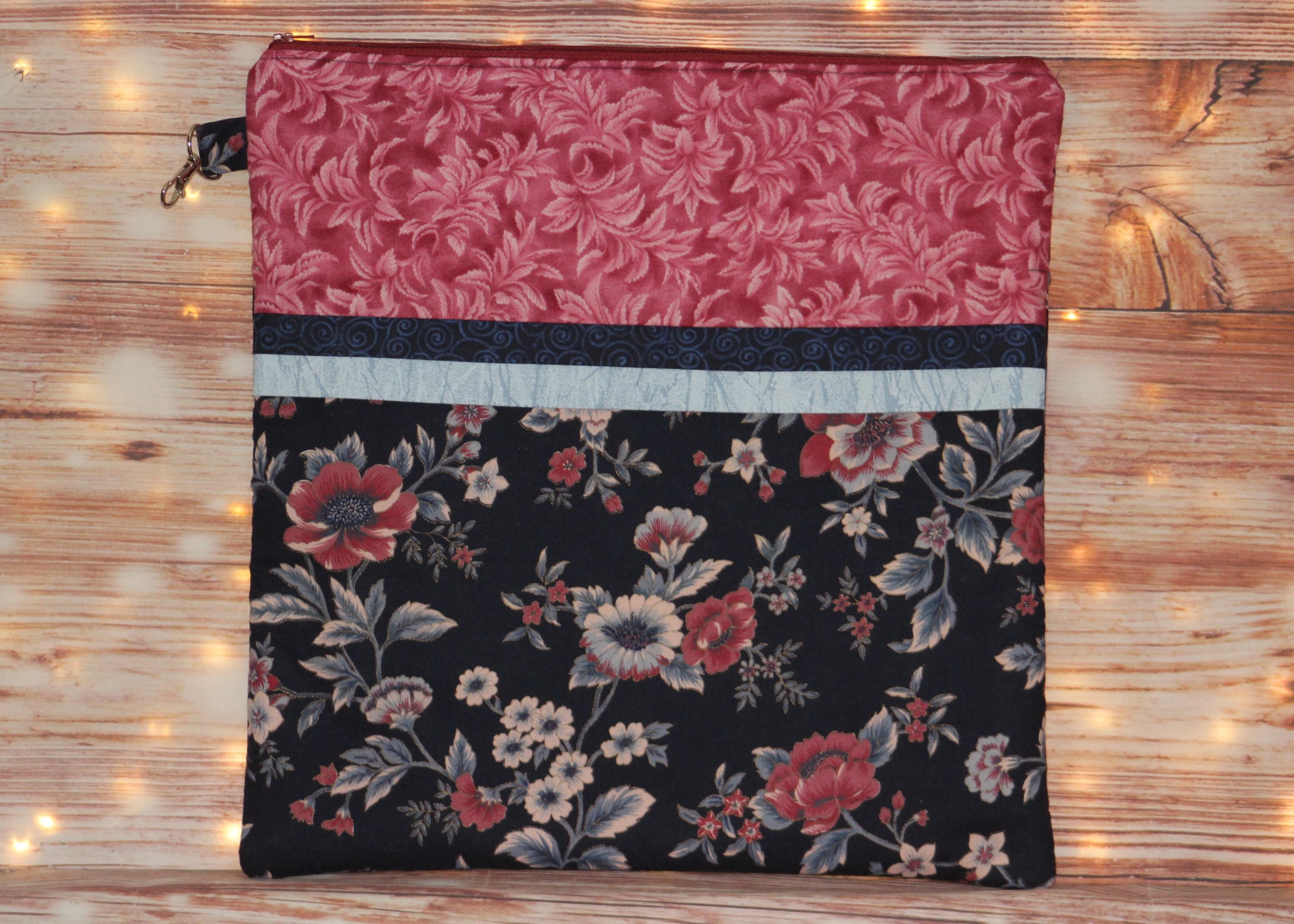 Pink and Blue Floral Project Bag OR 2-piece Set For Cross Stitch, Crochet, Knitting