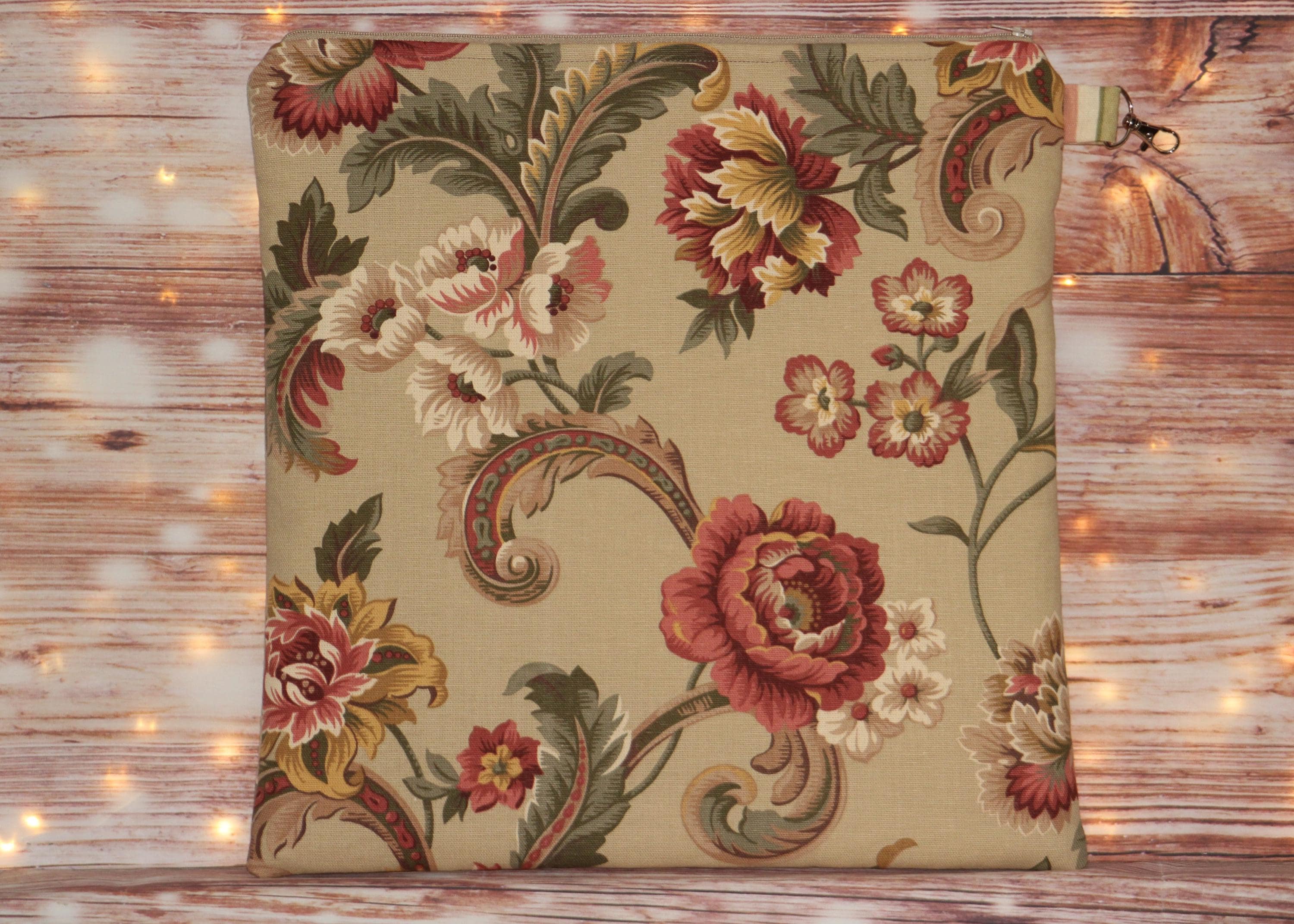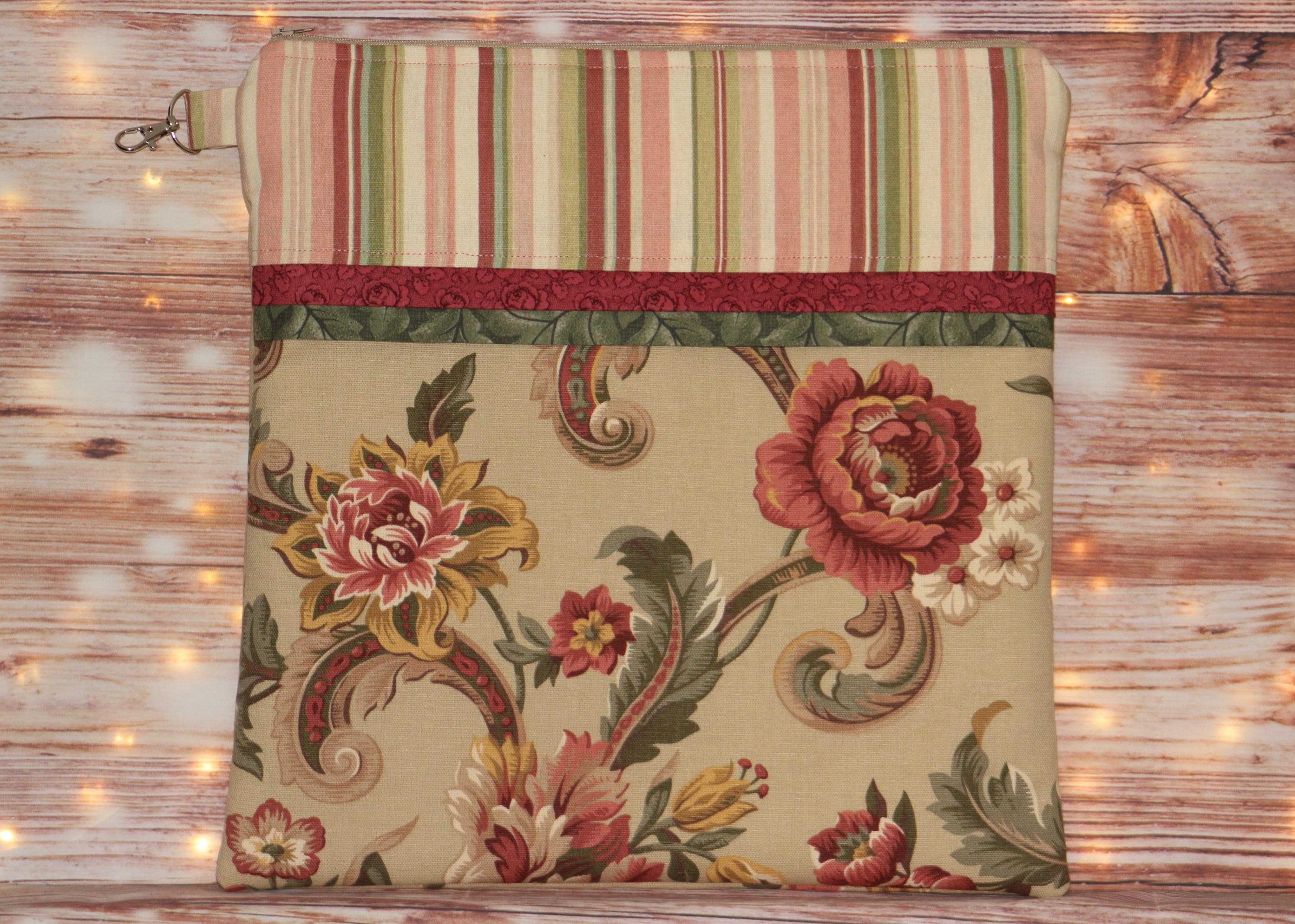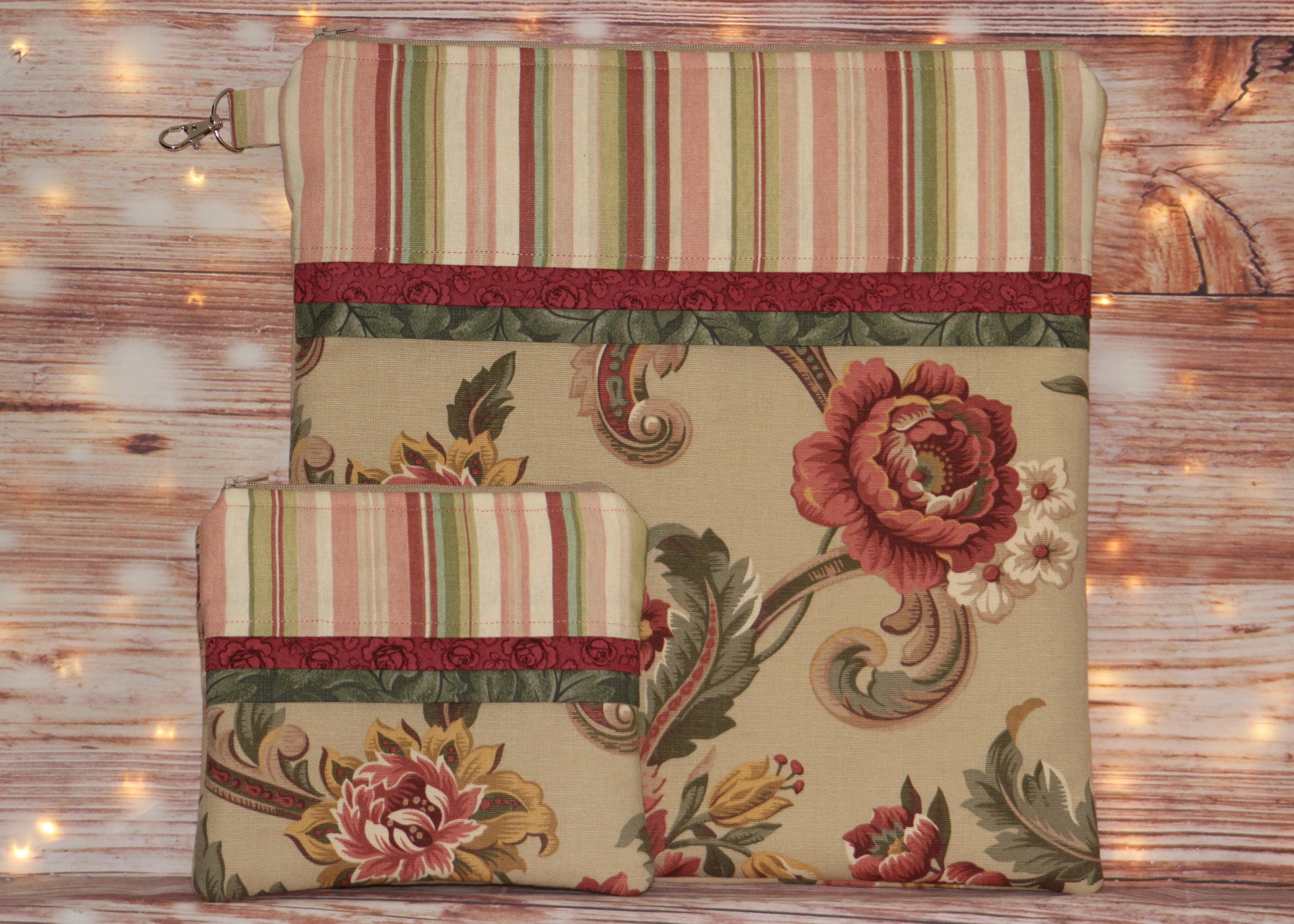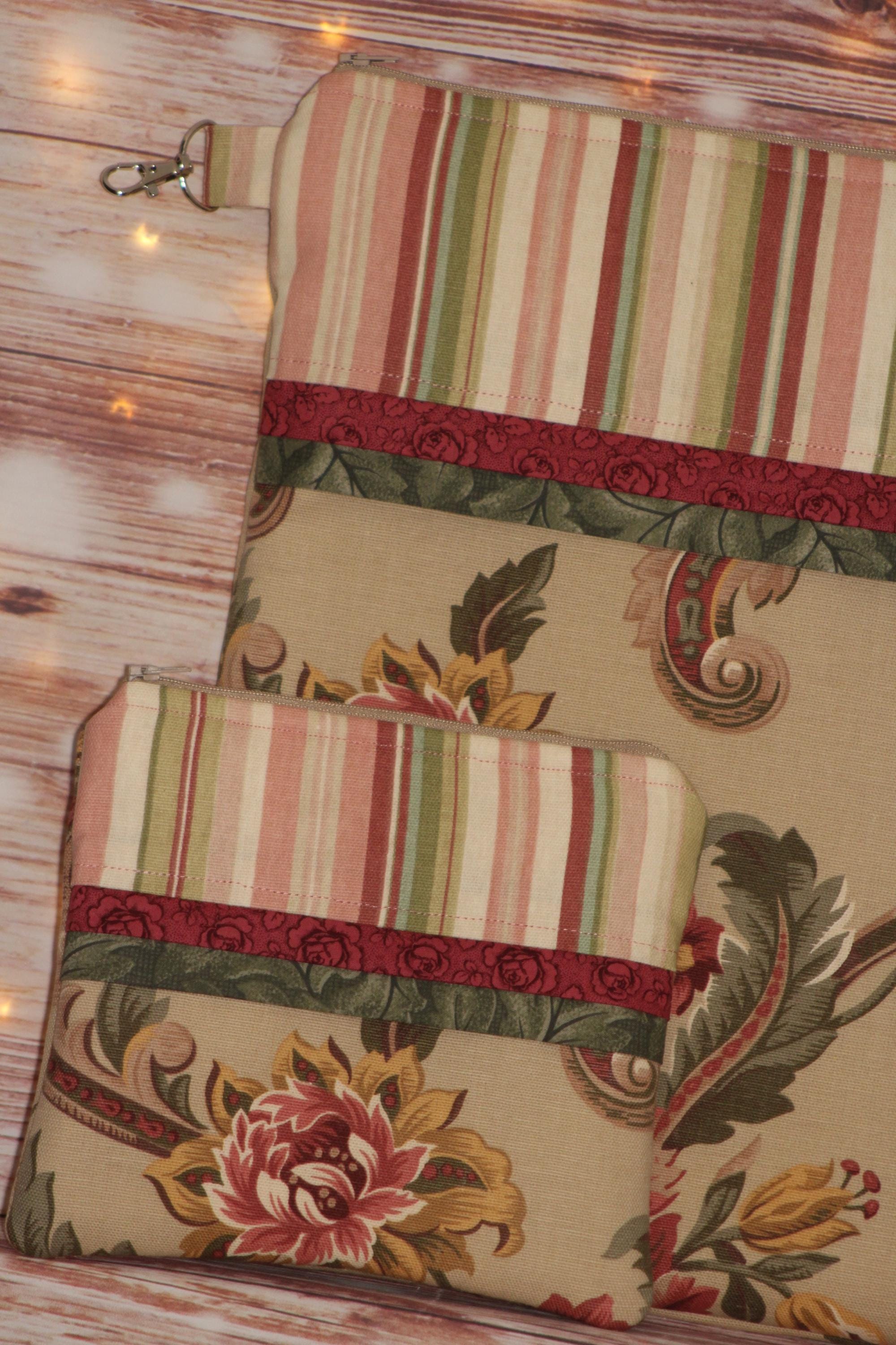 This fun set is made of cotton fabric, zippers, and batting in my smoke-free home studio.