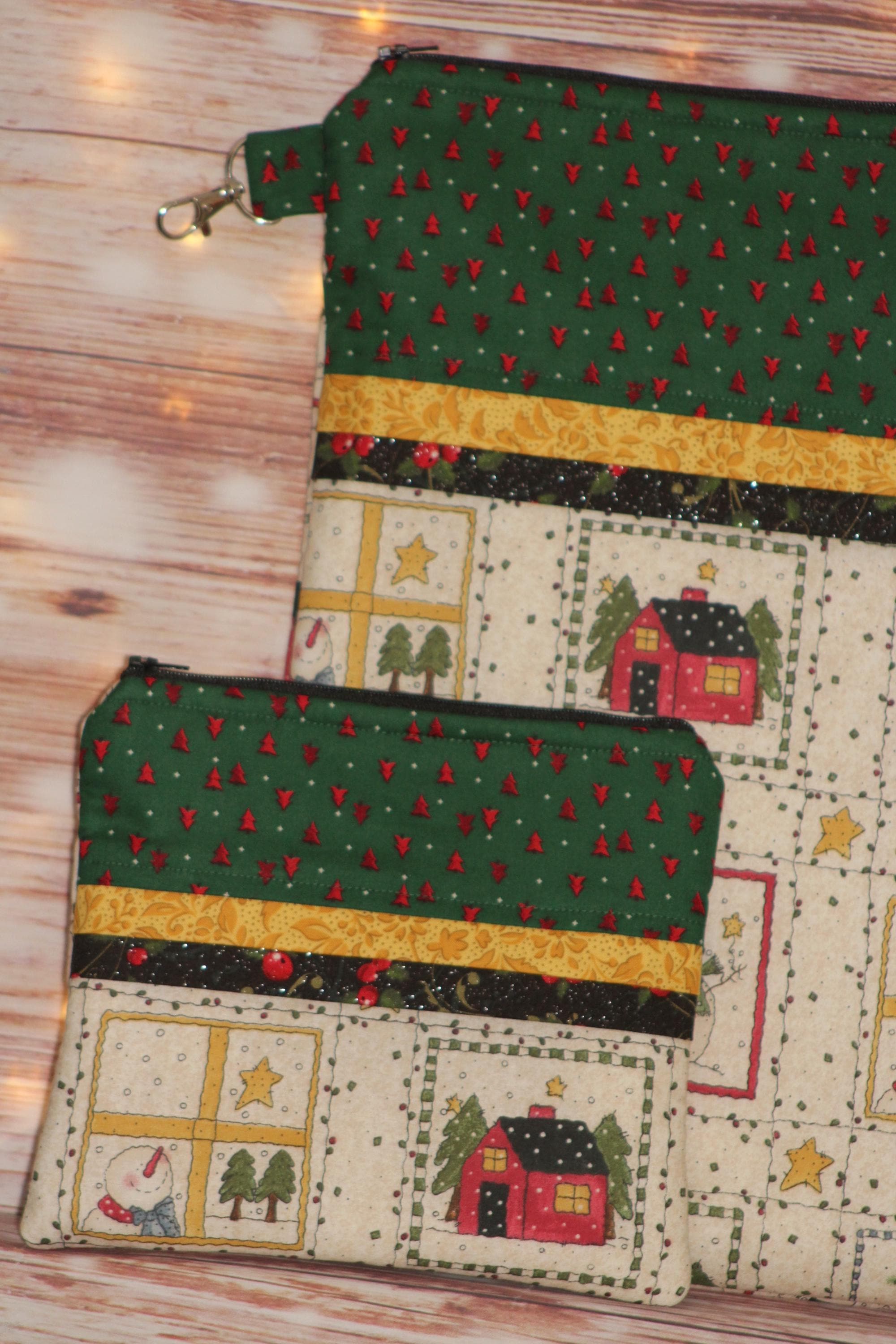 This fun set is made of cotton fabric, zippers, and batting in my smoke-free home studio.