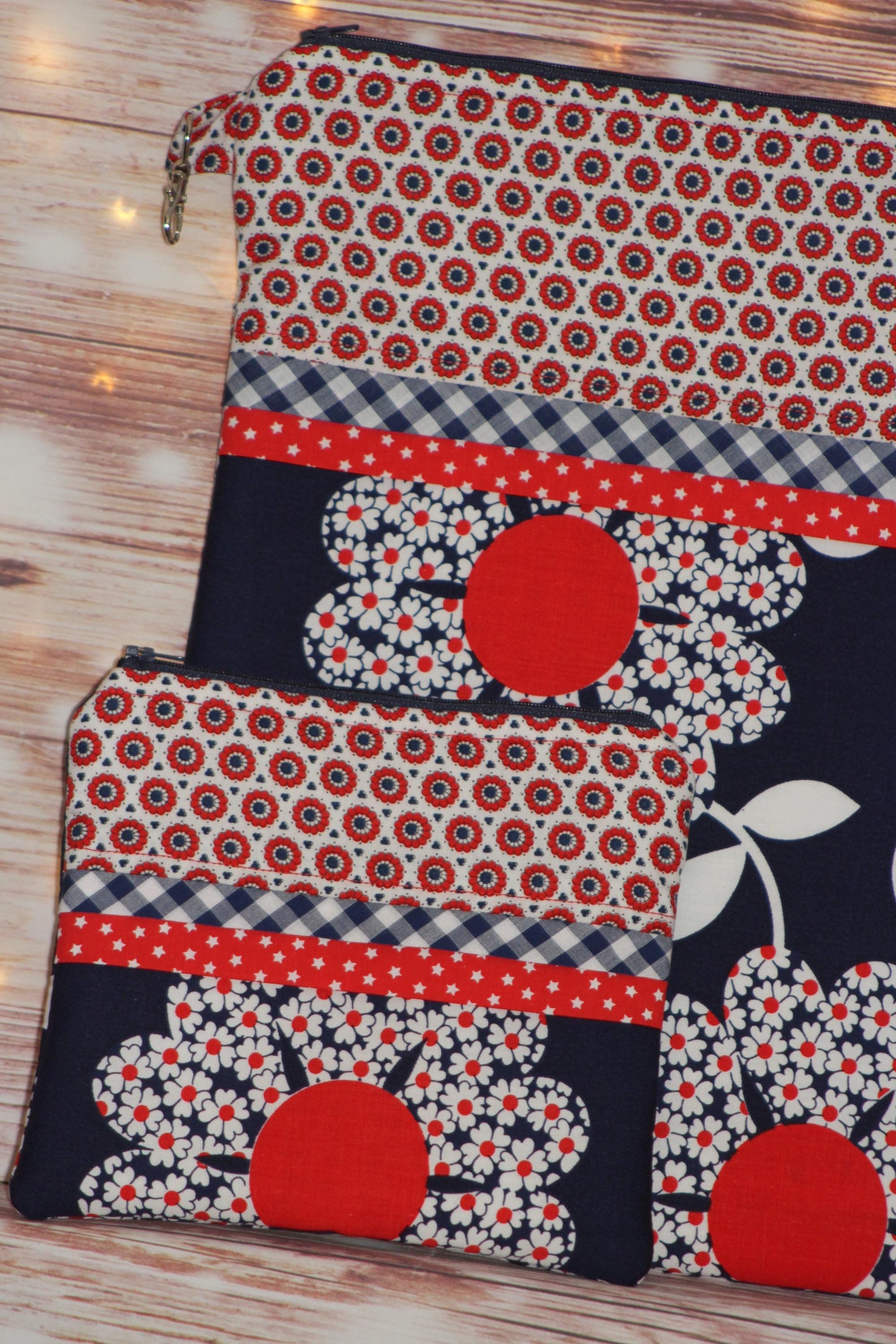 This fun set is made of cotton fabric, zippers, and batting in my smoke-free home studio.