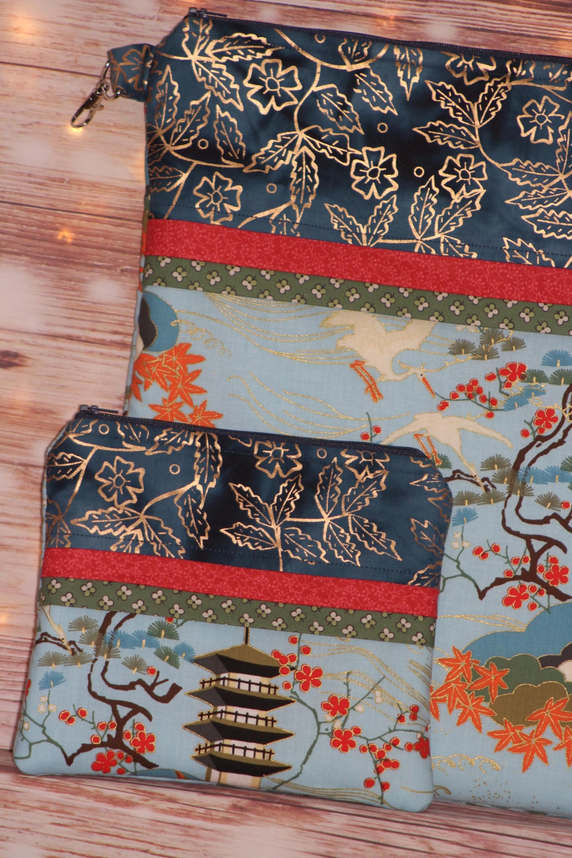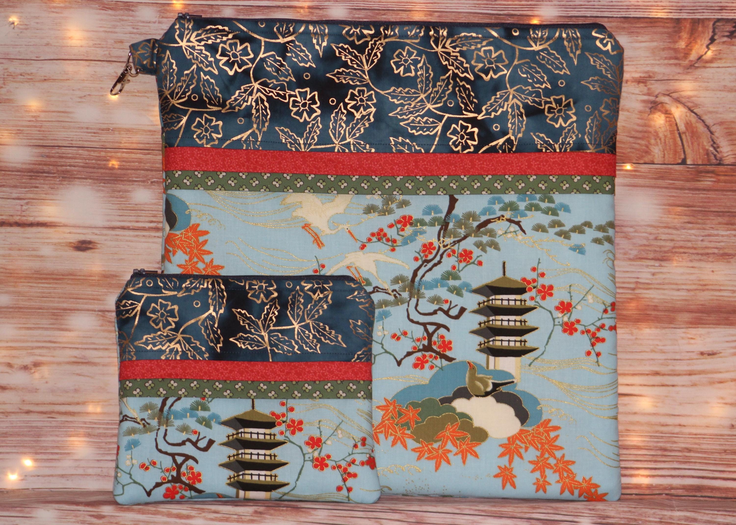 This fun set is made of cotton fabric, zippers, and batting in my smoke-free home studio.