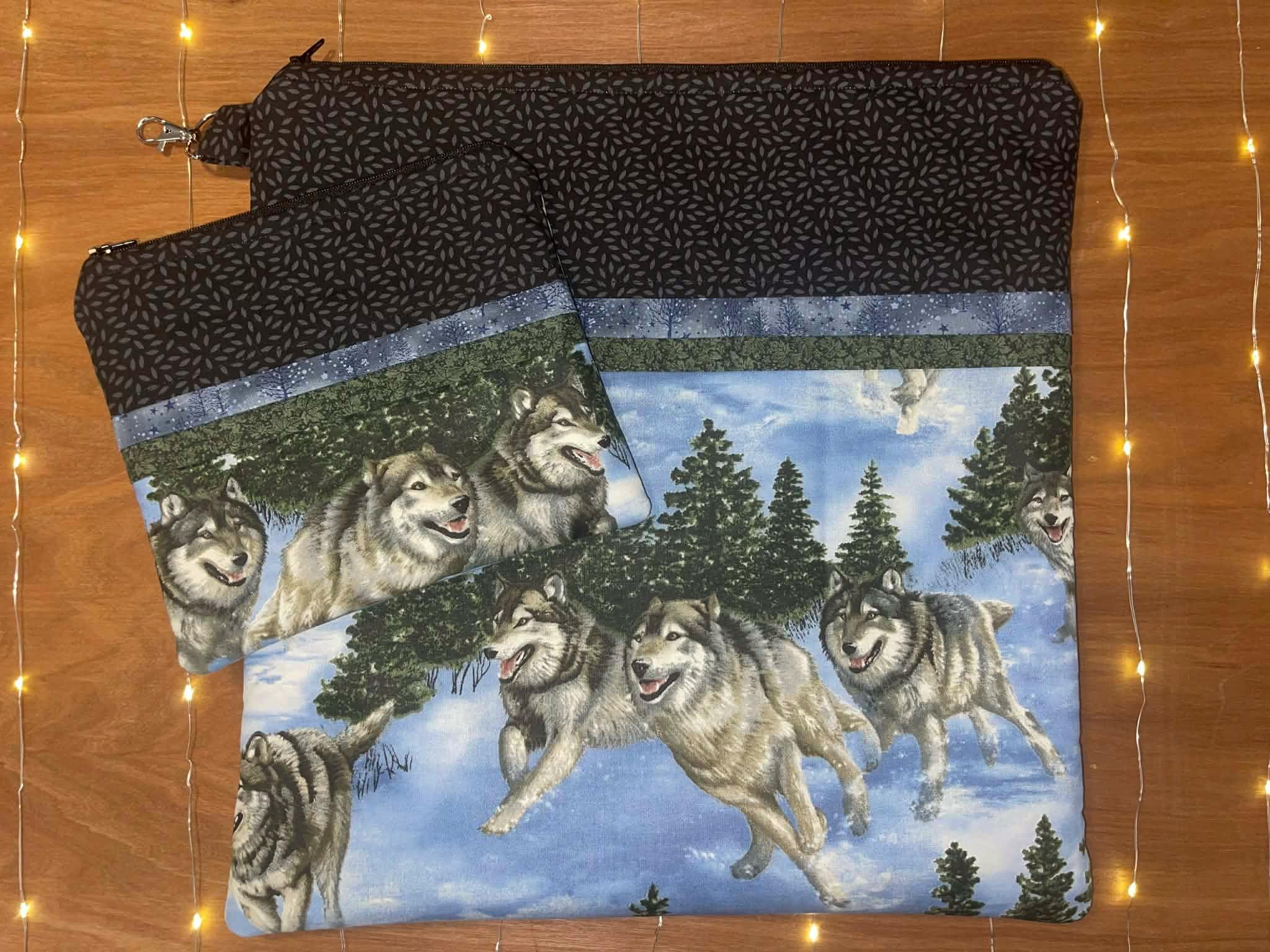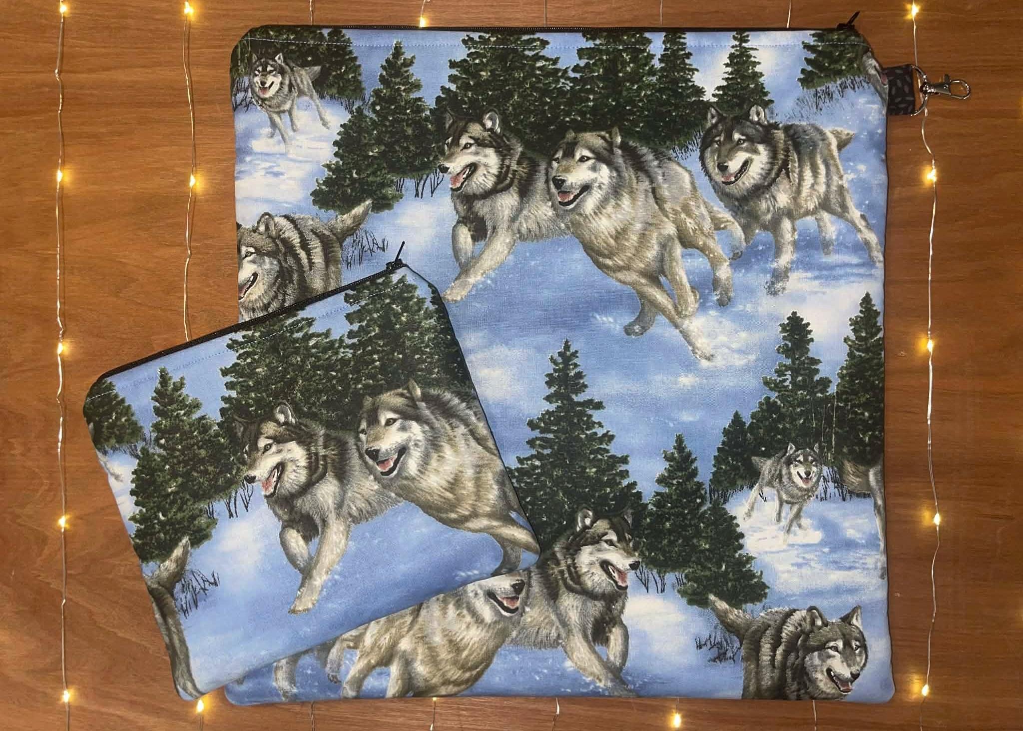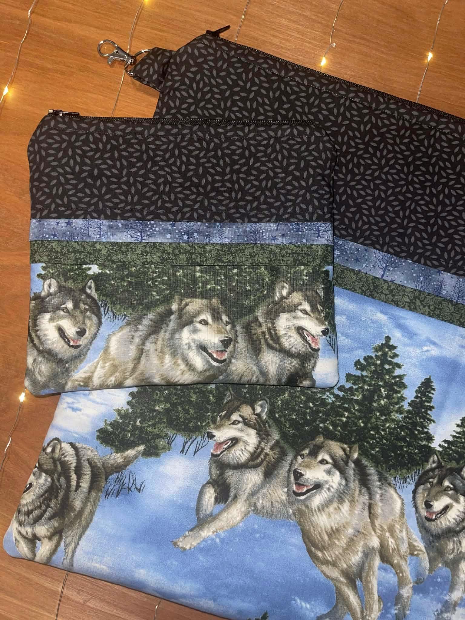 This fun set is made of cotton fabric, zippers, and batting in my smoke-free home studio.