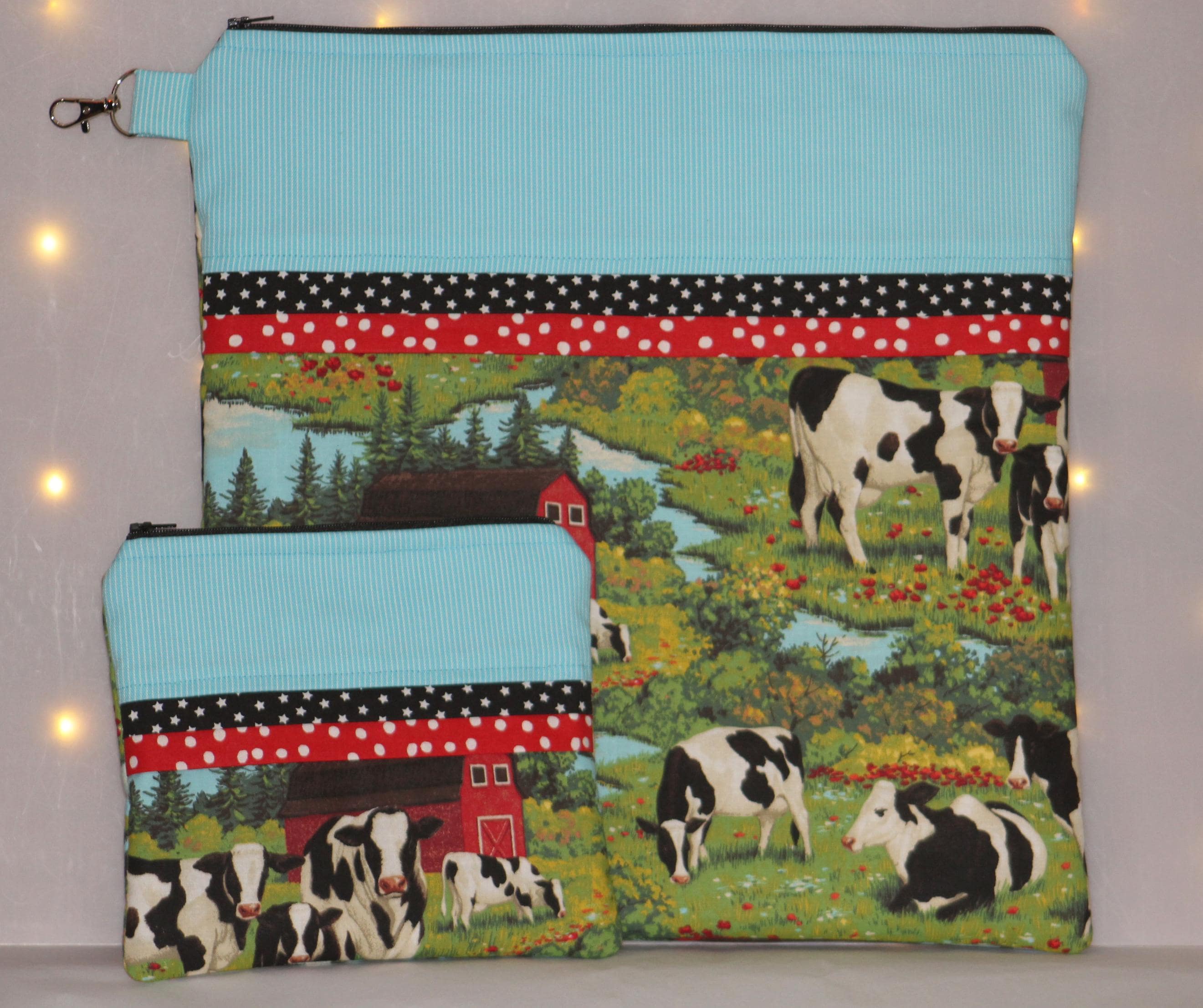 This fun set is made of cotton fabric, zippers, and batting in my smoke-free home studio.