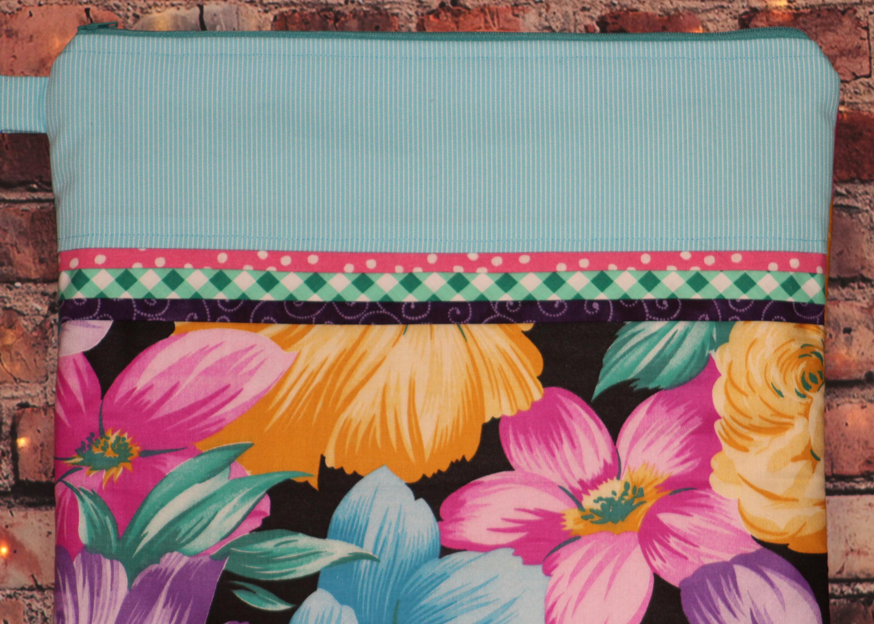 This fun set is made of cotton fabric, zippers, and batting in my smoke-free home studio.