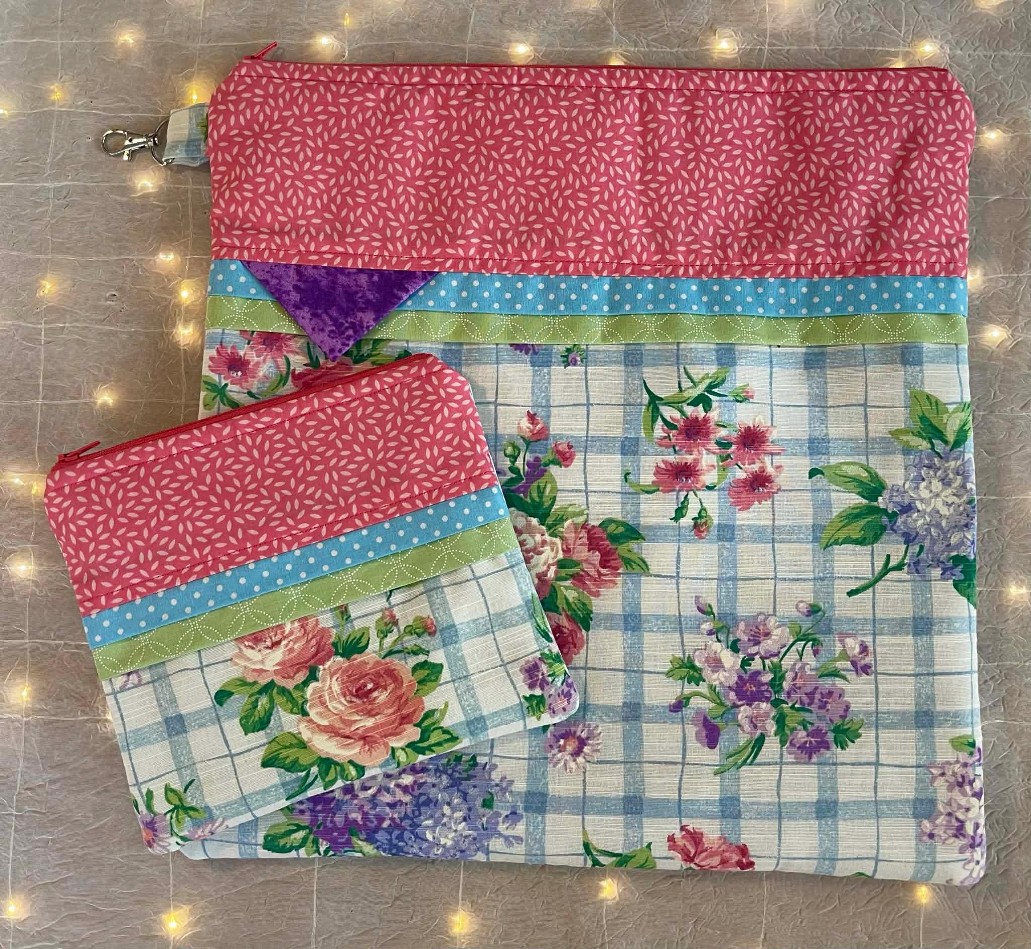 Bring a little smile to your stitching or needlecrafts with a cute little accessory bag for scissors, floss, etc.; and/or a project bag to tuck it all into for on the go.