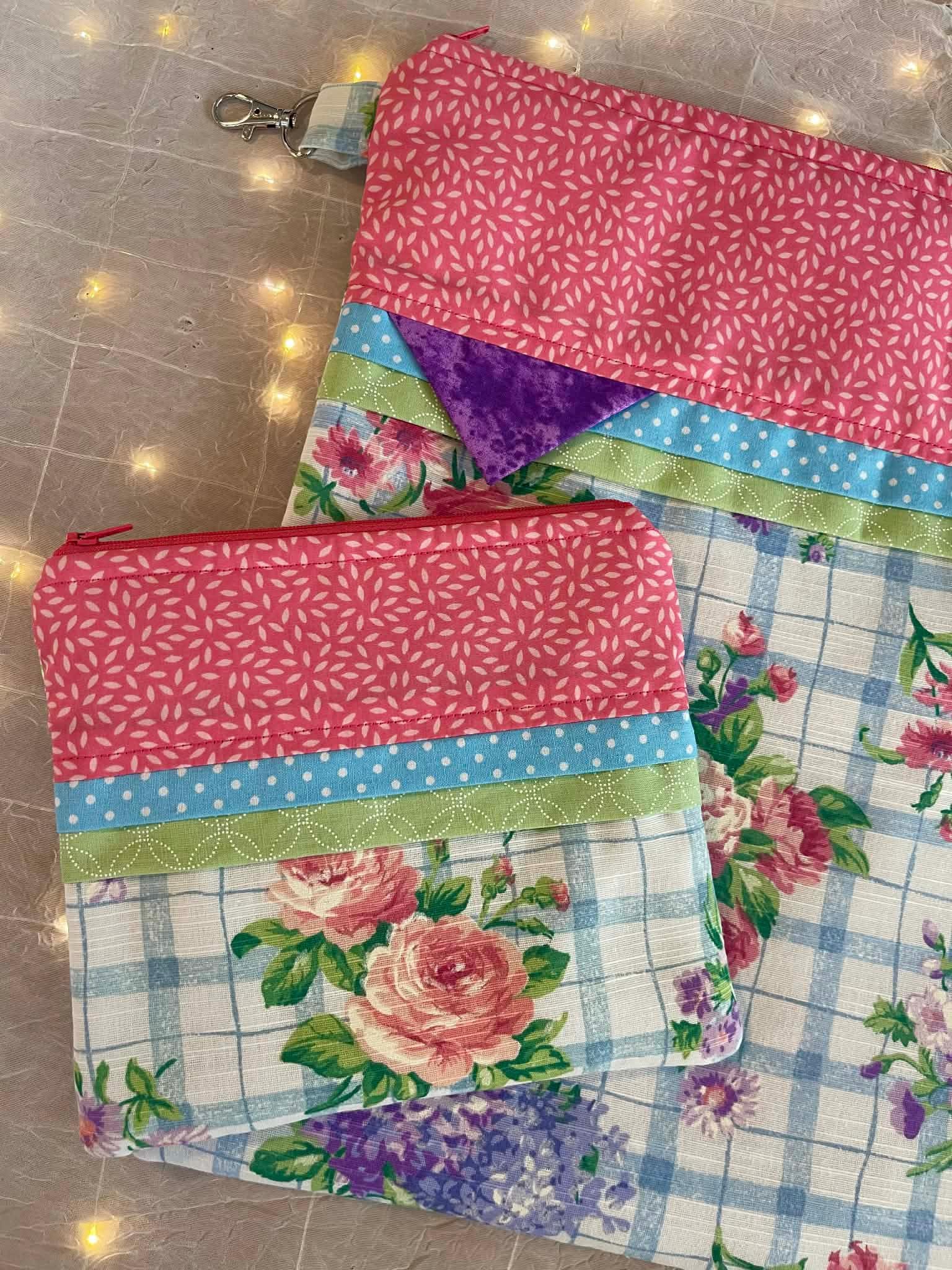 This fun set is made of cotton fabric, zippers, and batting in my smoke-free home studio.