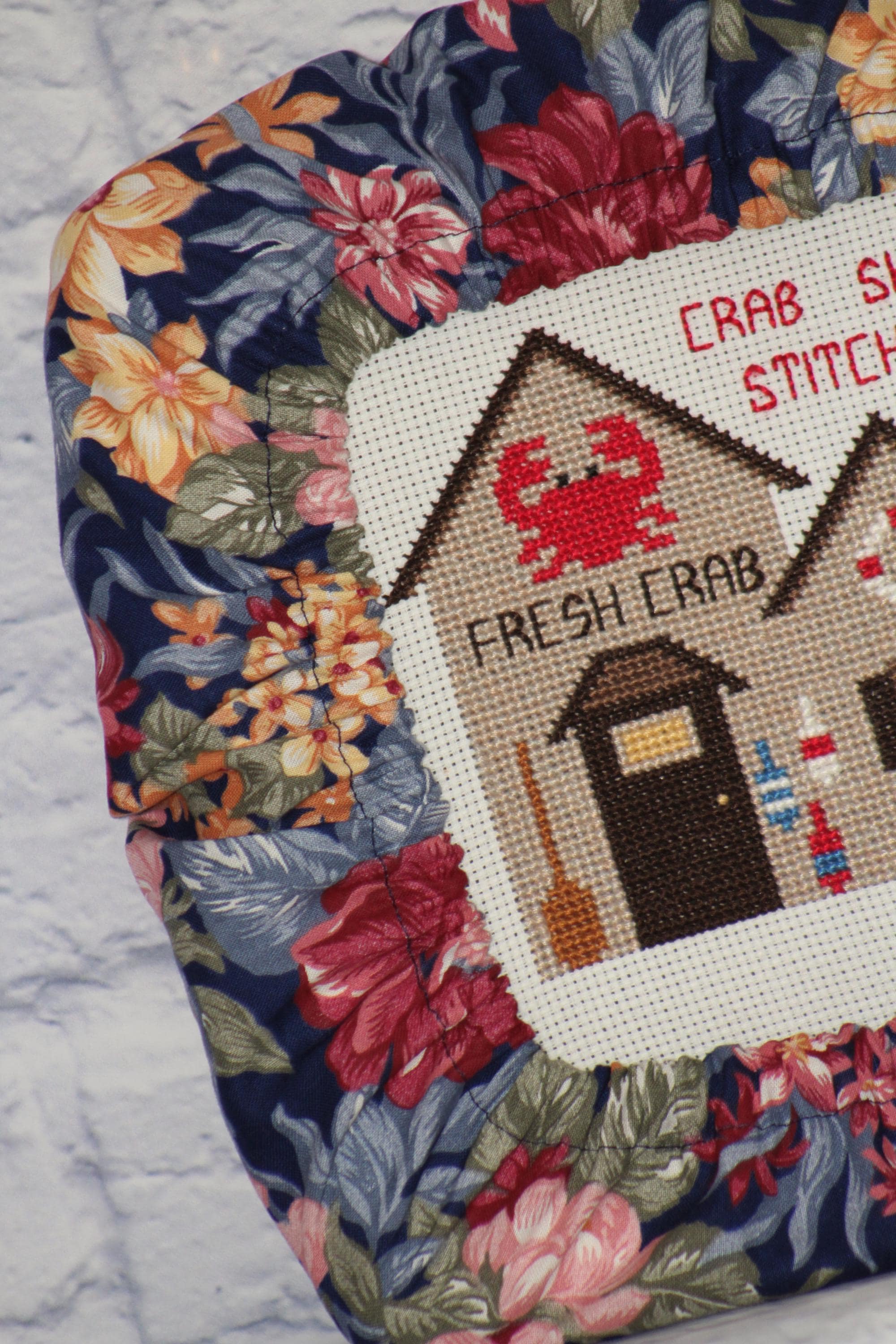 Floral on Navy Blue Grime Guard - Q-Snap, Nurge, Round Hoop Cover - Cross Stitch, Needlework