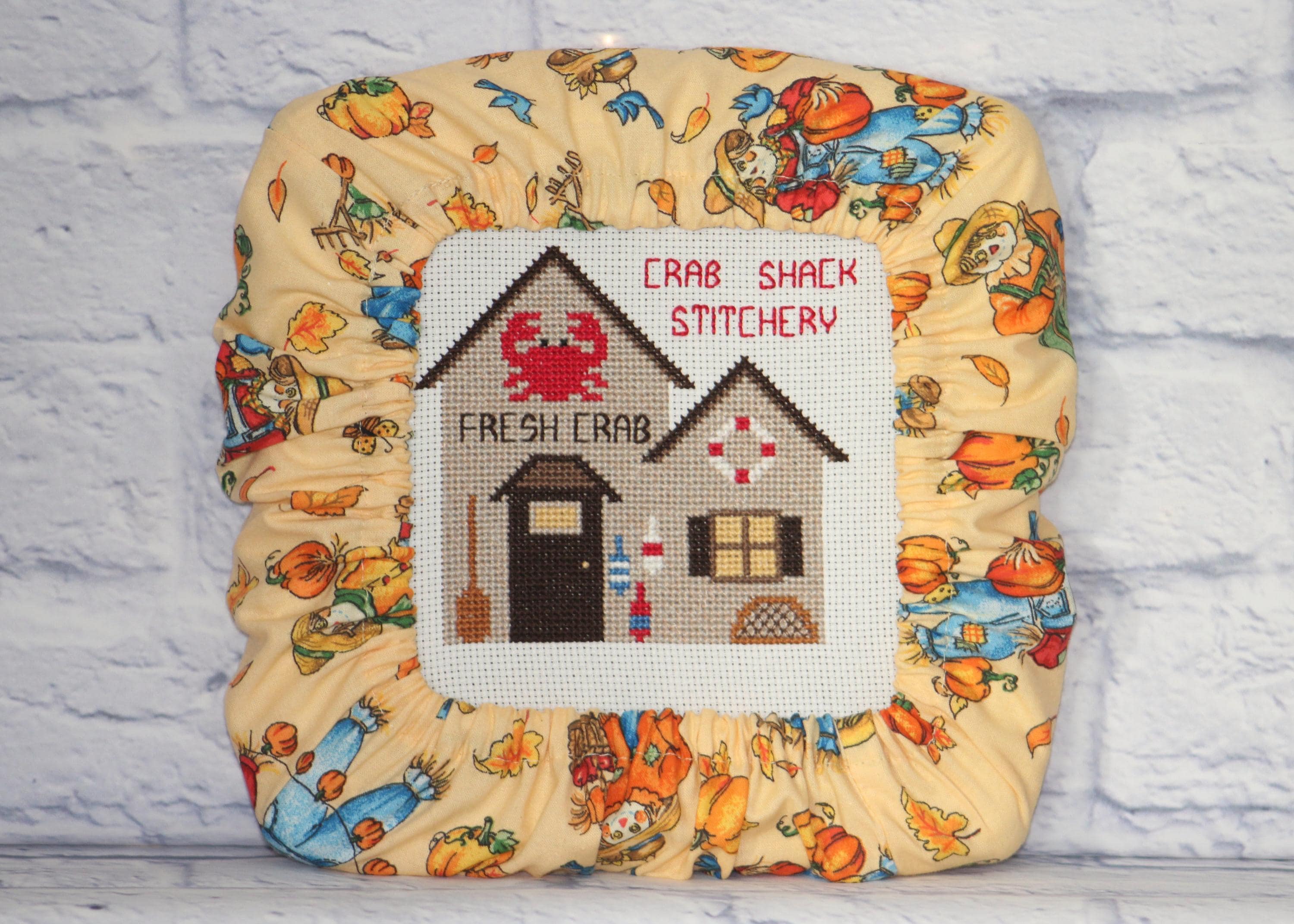 Autumn Scarecrow Grime Guard Q-Snap, Nurge, Round Hoop Cover For Cross Stitch, Needlework