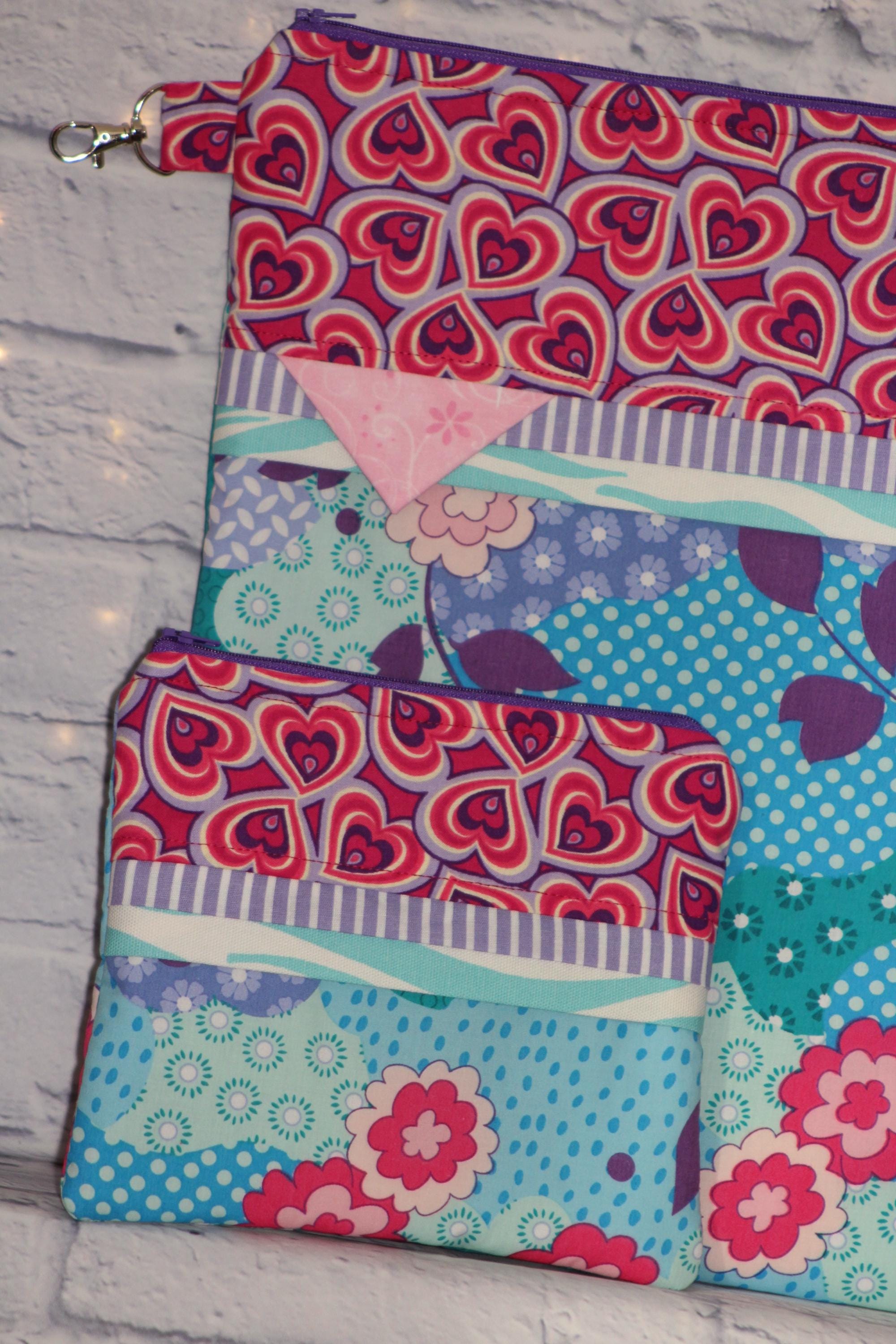 This fun set is made of cotton fabric, zippers, and batting in my smoke-free home studio.