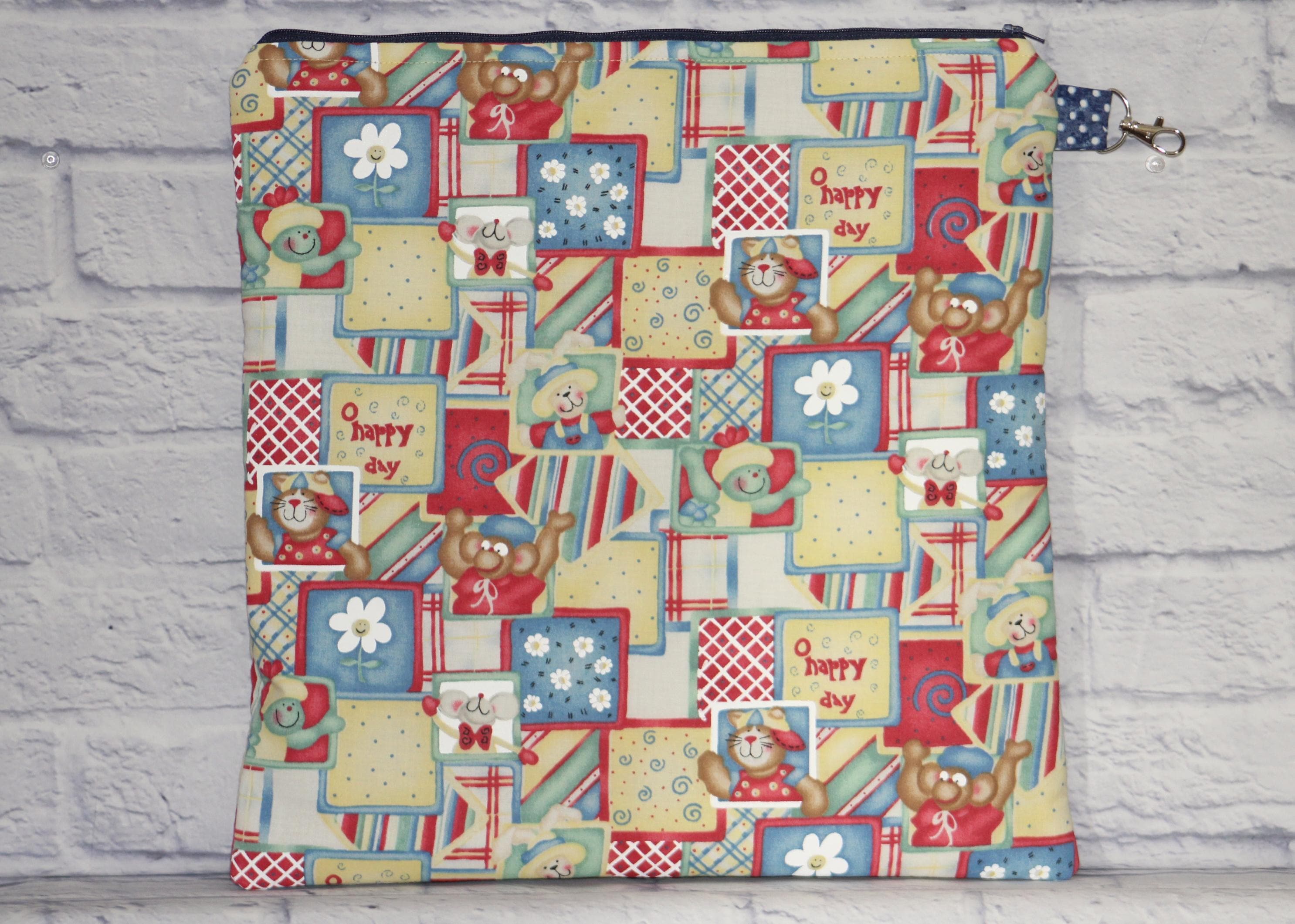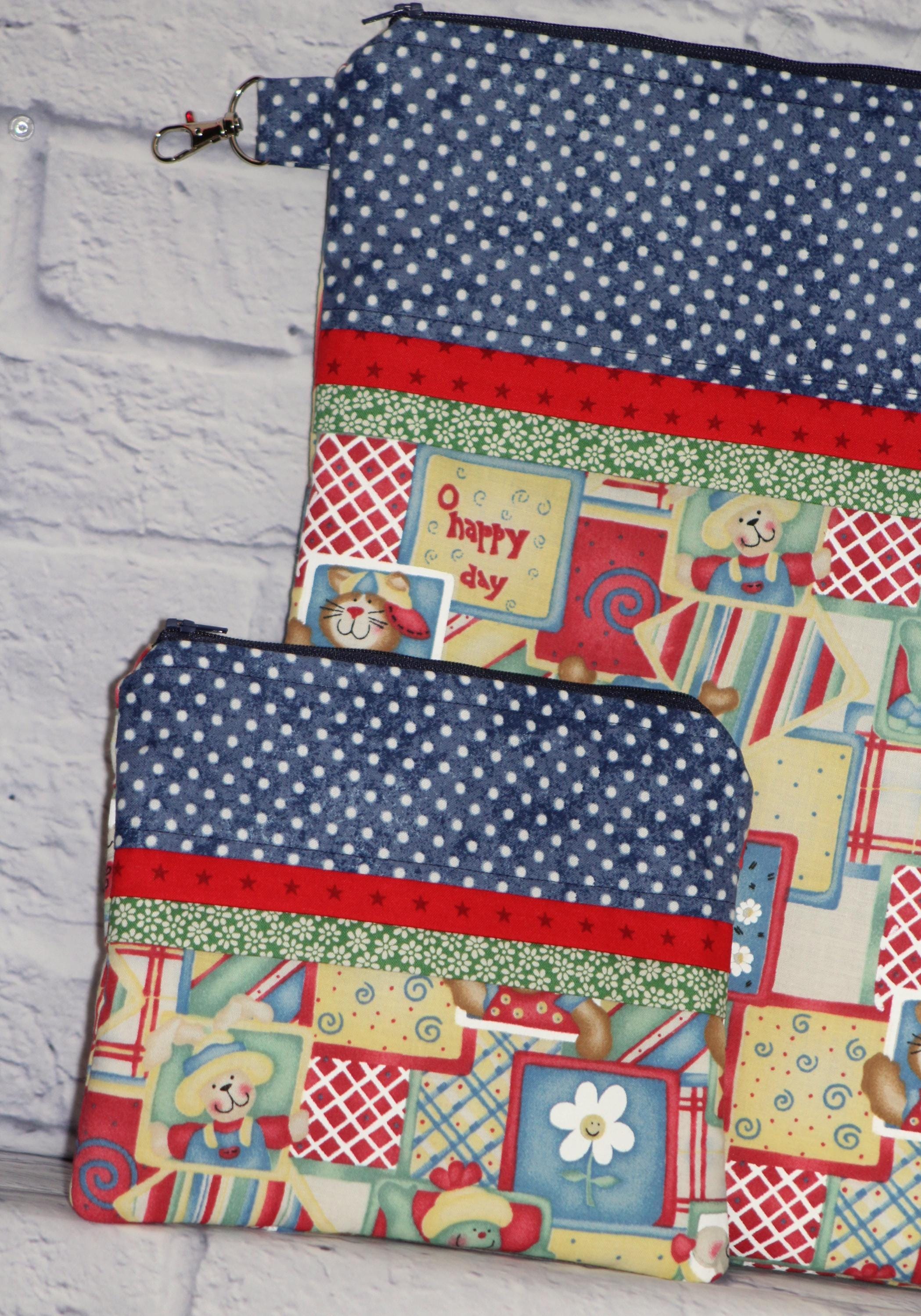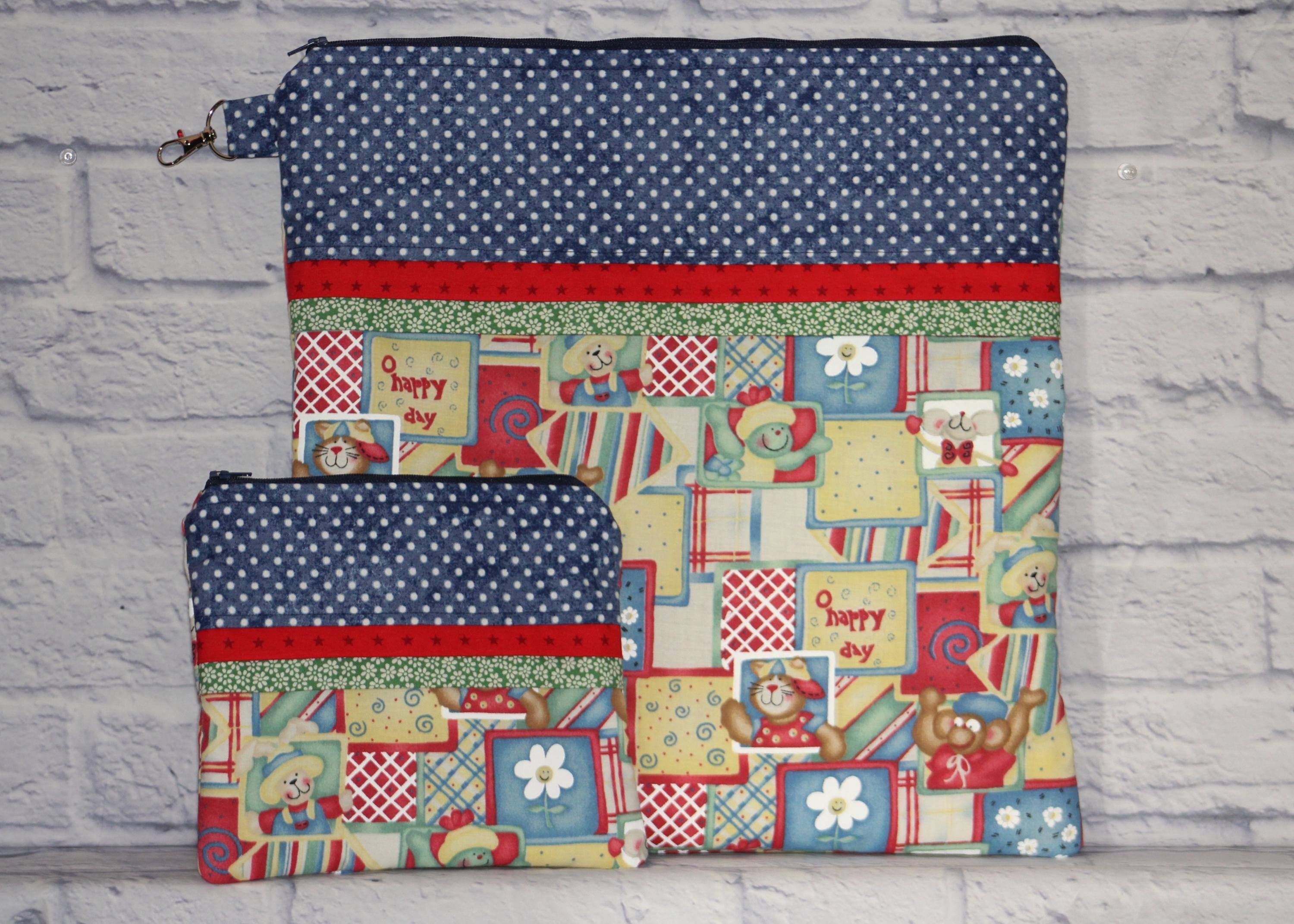 Bring a little smile to your stitching or needlecrafts with a cute little accessory bag for scissors, floss, etc.; and/or a project bag to tuck it all into for on the go.