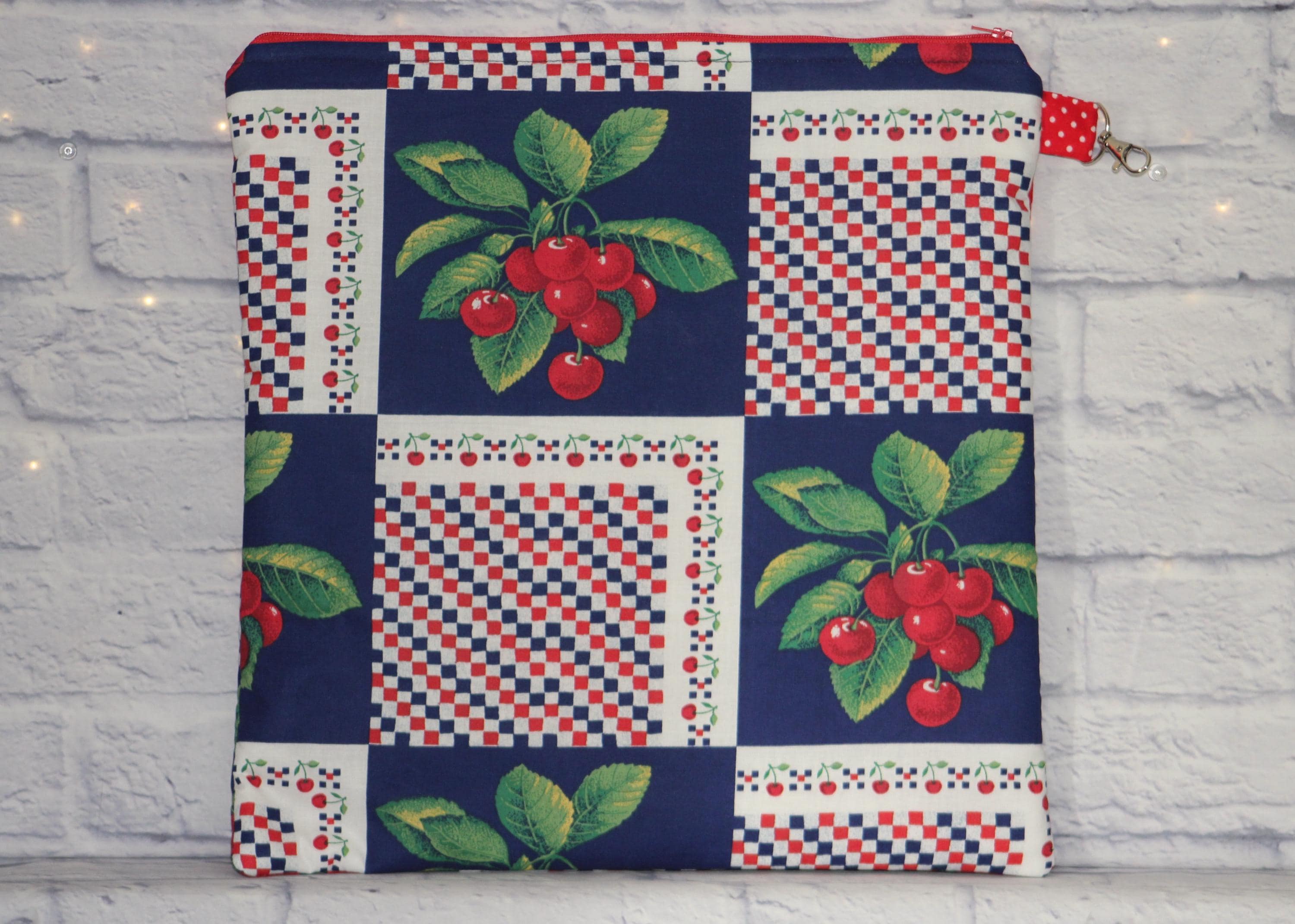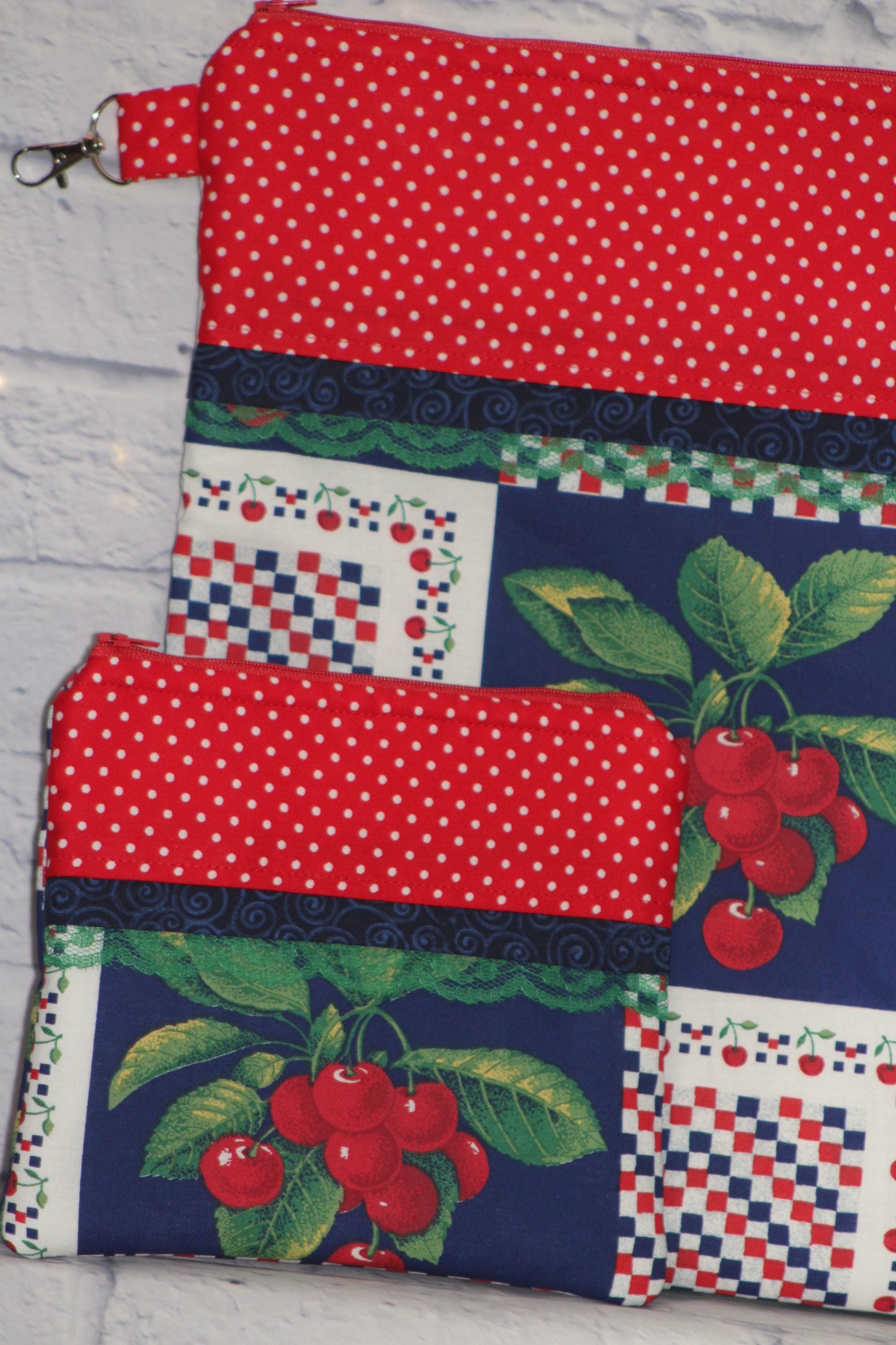 This fun set is made of cotton fabric, zippers, and batting in my smoke-free home studio.