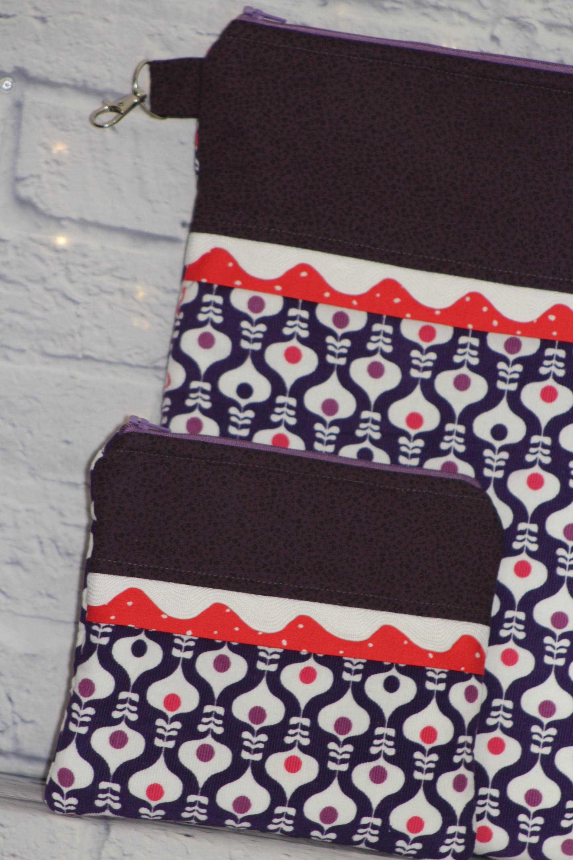 This fun set is made of cotton fabric, zippers, and batting in my smoke-free home studio.