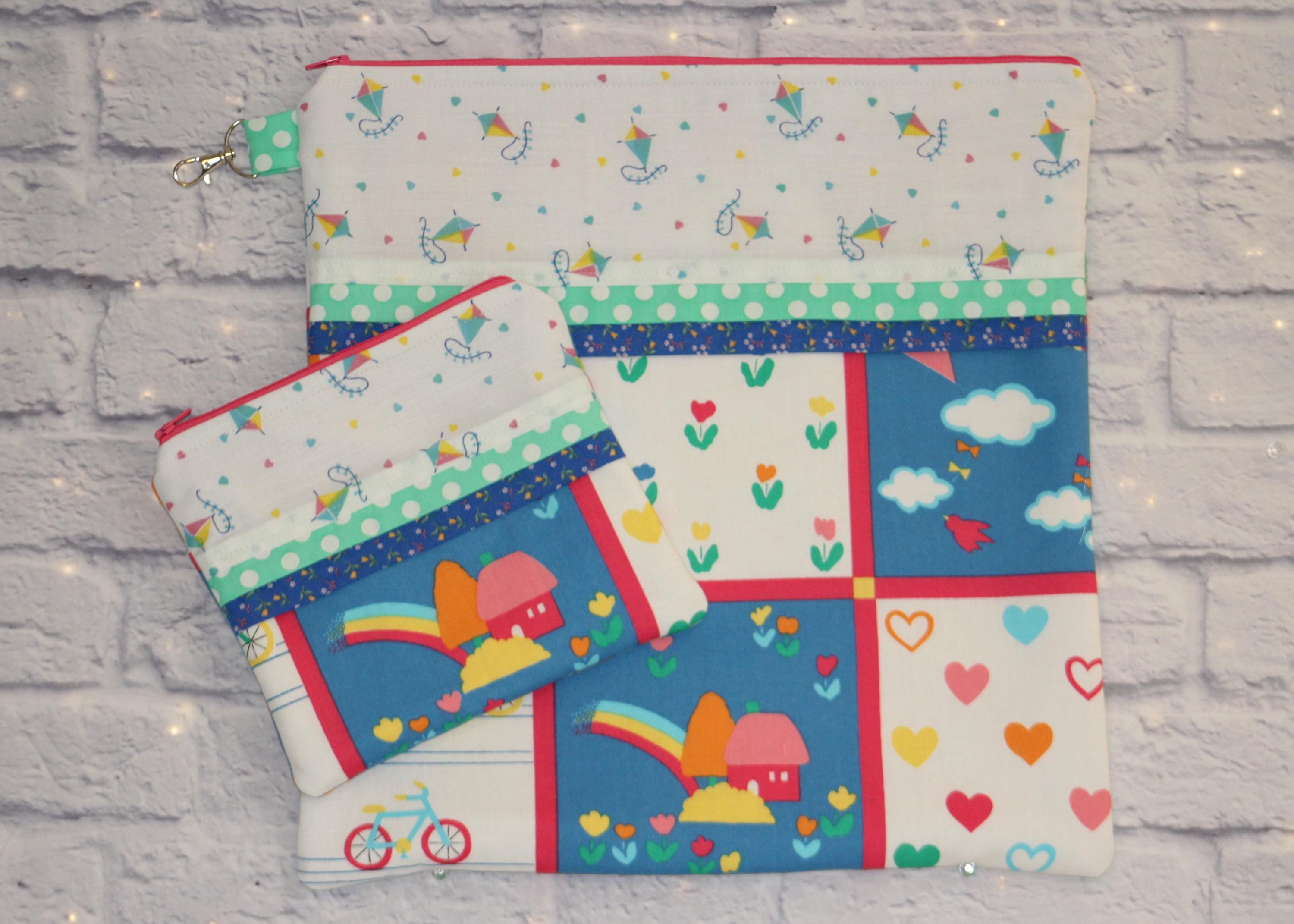 Bring a little smile to your stitching or needlecrafts with a cute little accessory bag for scissors, floss, etc.; and/or a project bag to tuck it all into for on the go.